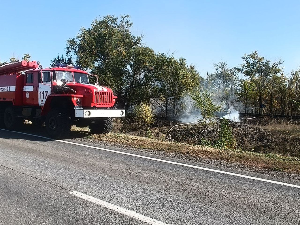 В эти же дежурные сутки, в 17:18 поступило сообщение о возгорании сухой травы вдоль автомобильной дороги Богатое-Отрадный. Площадь пожара составила 300 квадратных метров. На тушение - оперативно поданы 2 ствола «Б» и 1 ранцевый лесной огнетушитель. В 17:50 возгорание было полностью ликвидировано.