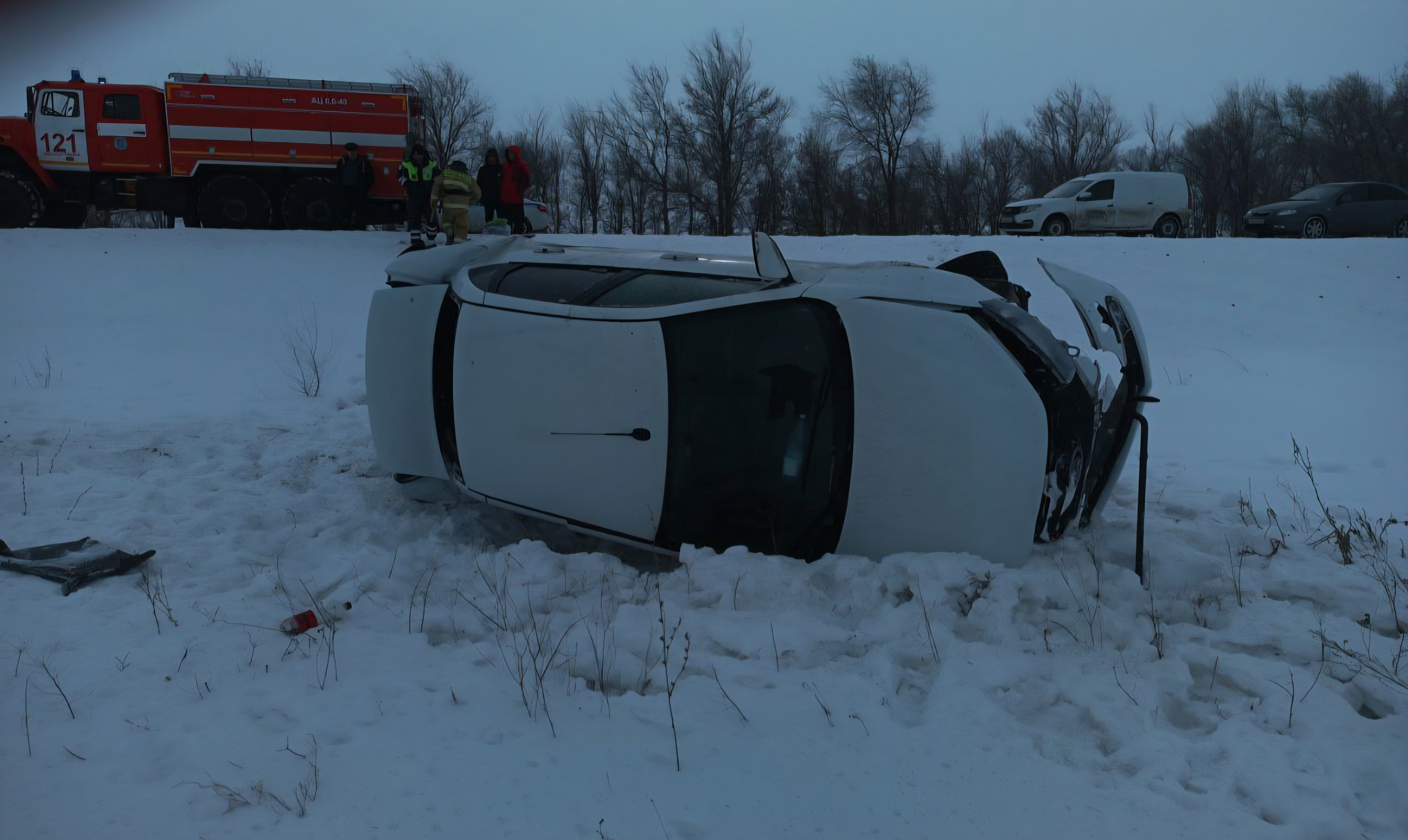 По прибытии было установлено, что произошёл съезд в кювет с последующим опрокидыванием легкового автомобиля LADA Granta.