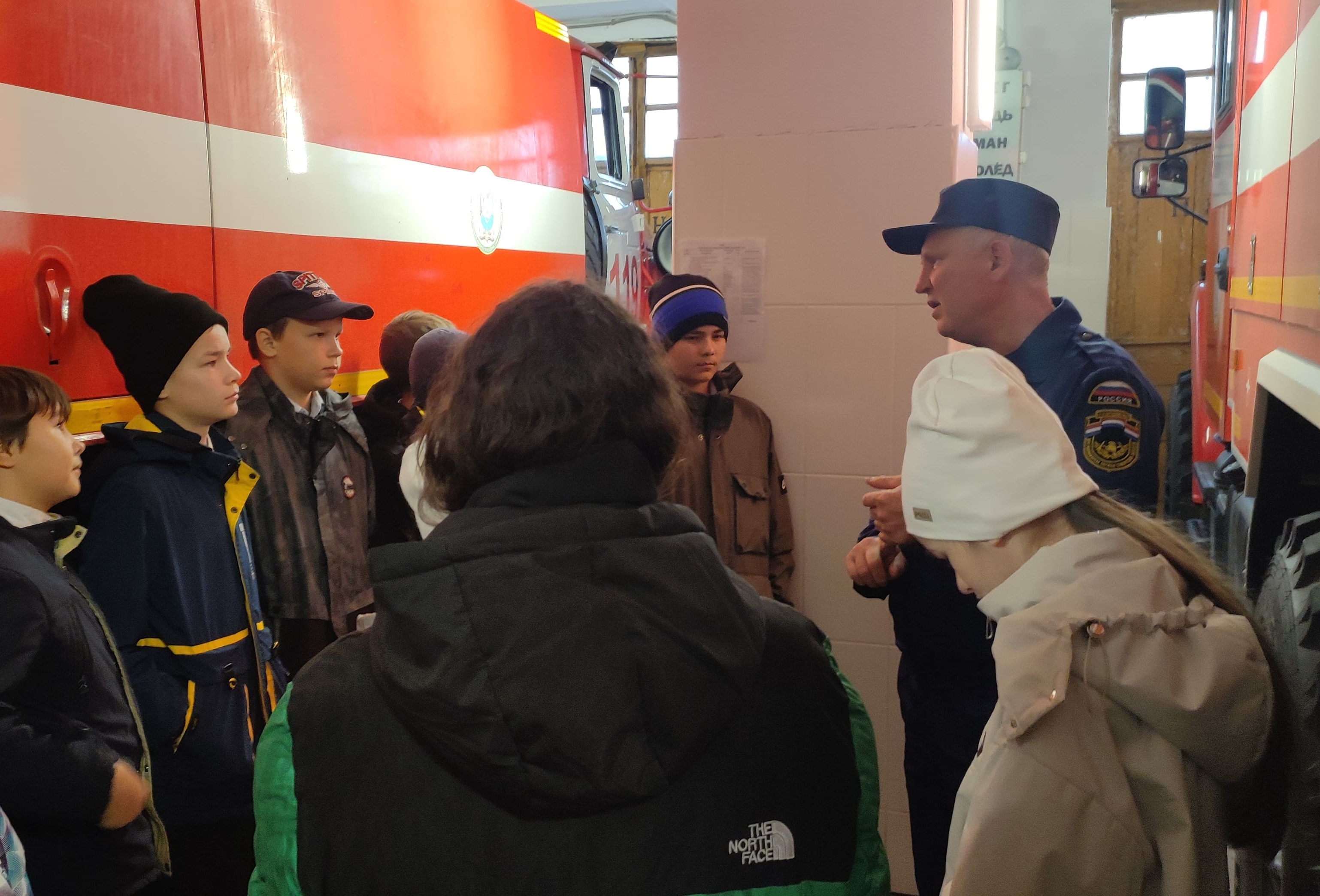 Школьники внимательно рассматривали экипировку пожарных, смогли посидеть в пожарных автомобилях.