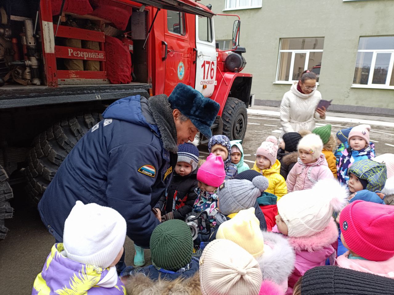В начале декабря огнеборцы пожарно-спасательного отряда № 40 филиала государственного казенного учреждения Самарской области «Центр по делам ГО, ПБ и ЧС» Сергиевского района приехали в гости на пожарной машине к воспитанникам детского сада «Золотой Ключик» поселка городского типа Суходол, на территории которого и прошло знакомство детей с работой пожарных-спасателей и с пожарной машиной.