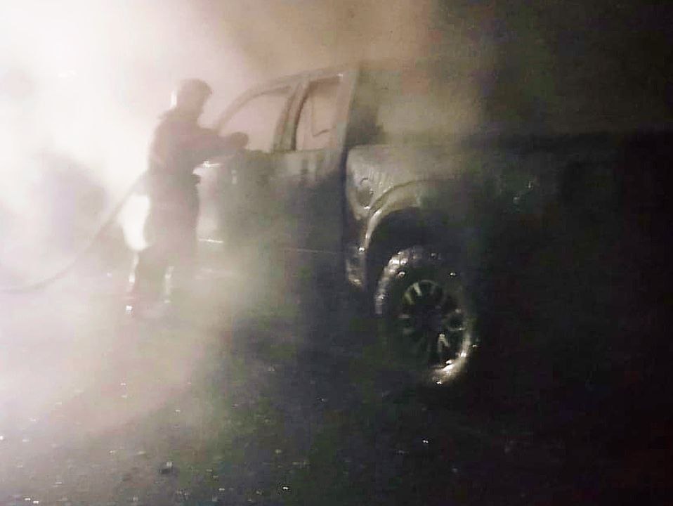 Спустя 4 часа, в 01:59, дежурному диспетчеру поступило сообщение о загорании в пути следования автомобиля около железнодорожного переезда села Печинено на автодороге «Кинель-Богатое-Борское». По прибытии на место вызова было установлено, что открытым пламенем горит кабина и моторный отсек грузового автомобиля Ford F-150. На тушение пожара был подан воздушно-пенный ствол, в 02:20 - пожар полностью ликвидирован.