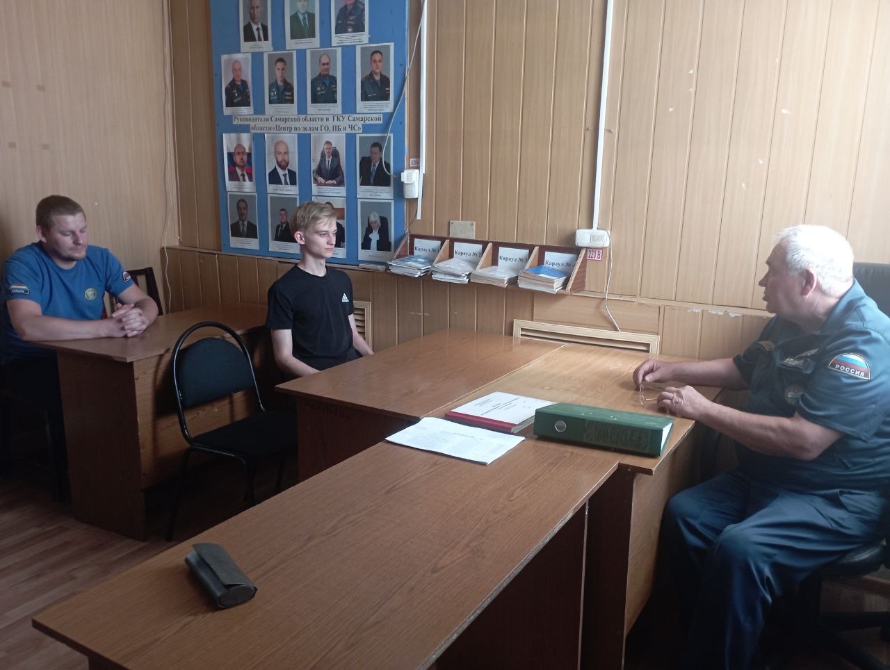 Так, в Красноярском районе ветеран пожарной охраны инструктор противопожарной профилактики пожарно-спасательного отряда № 41 филиала ГКУ Самарской области «Центр по делам ГО, ПБ и ЧС» Николай Купцов на днях провел беседу с вновь принятыми на должность пожарного-спасателя.