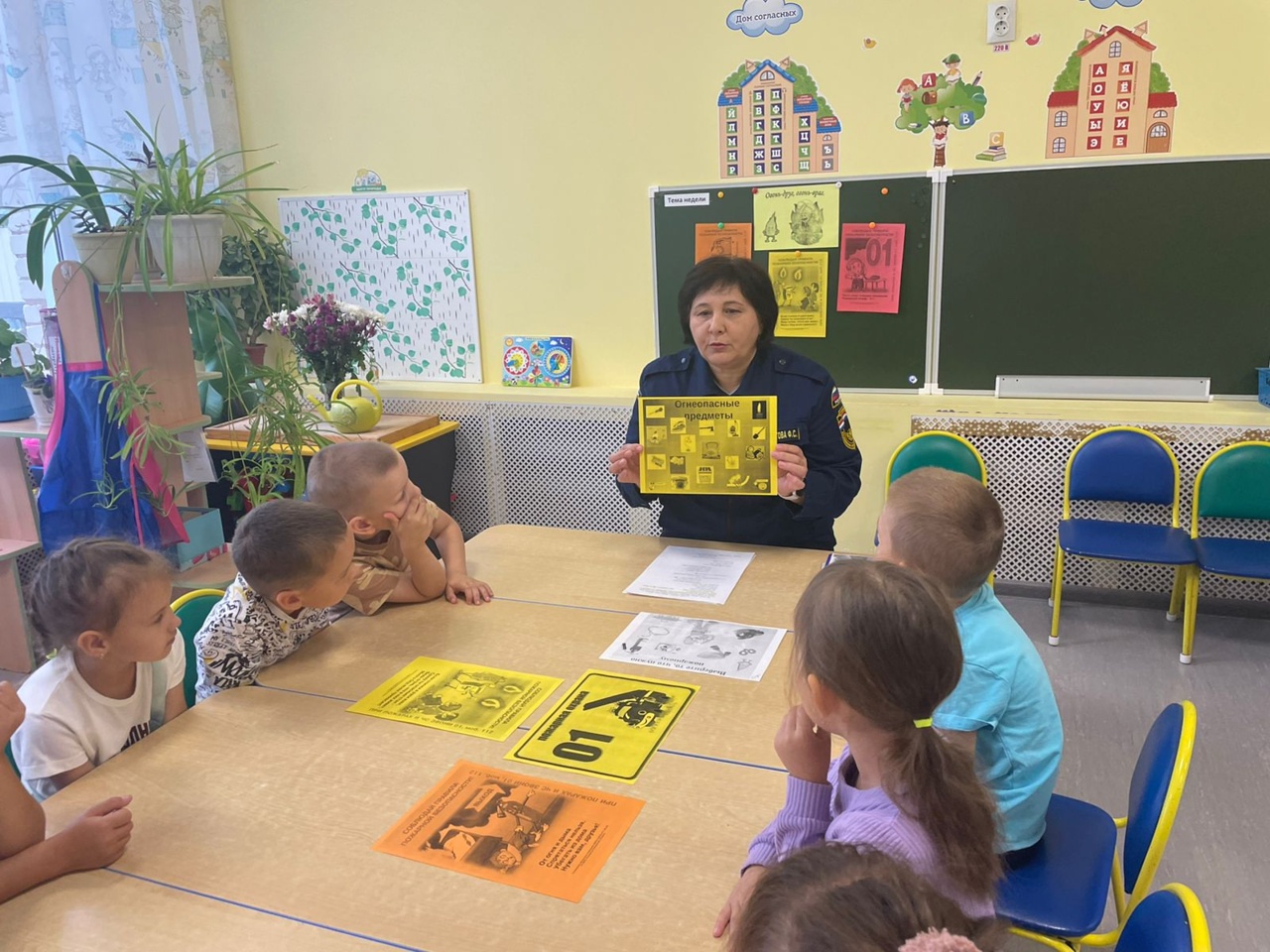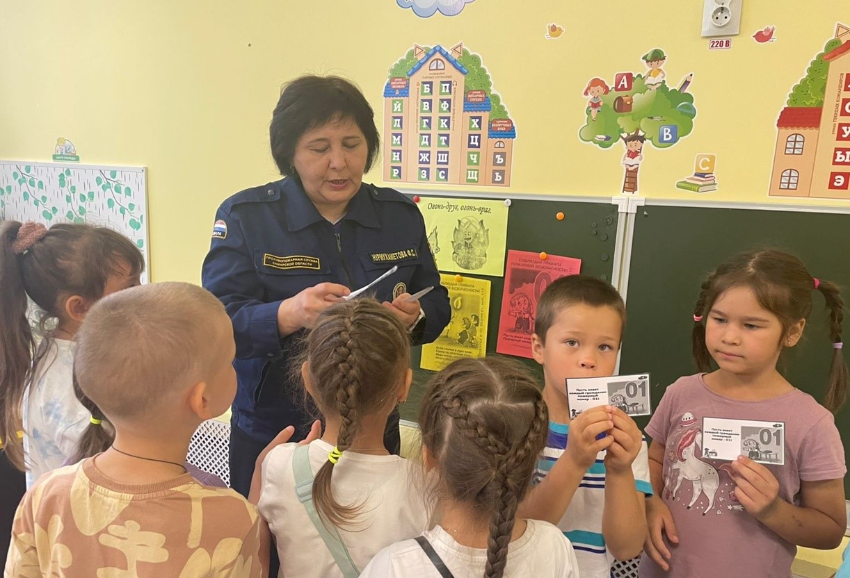 Инструктор противопожарной профилактики пожарно-спасательной части № 131 Шенталинского района государственного казенного учреждения Самарской области «Центр по делам гражданской обороны, пожарной безопасности и чрезвычайным ситуациям» Фаиля Нурмухаметова провела профилактическое занятие с воспитанниками подготовительной группы детского сада «Звездочка». Занятие было направлено на формирование у детей осознанного и ответственного отношения к собственной безопасности, на овладение знаниями и навыками, необходимыми для действия в экстремальных ситуациях.