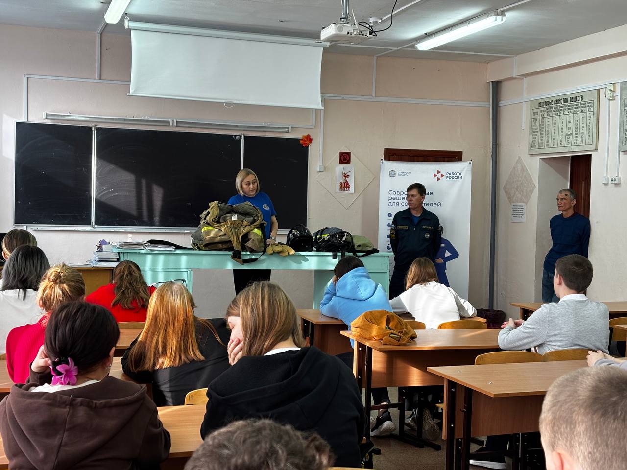 Так, представители пожарно-спасательного отряда № 35 филиала государственного казенного учреждения Самарской области «Центр по делам гражданской обороны, пожарной безопасности и чрезвычайным ситуациям» совместно с специалистами территориального центра занятости населения провели профориентационную встречу со школьниками 8 - 9 классов школы № 7 города Похвистнево, чтобы популяризировать профессию пожарного и помочь старшеклассникам определиться с выбором будущей профессии.