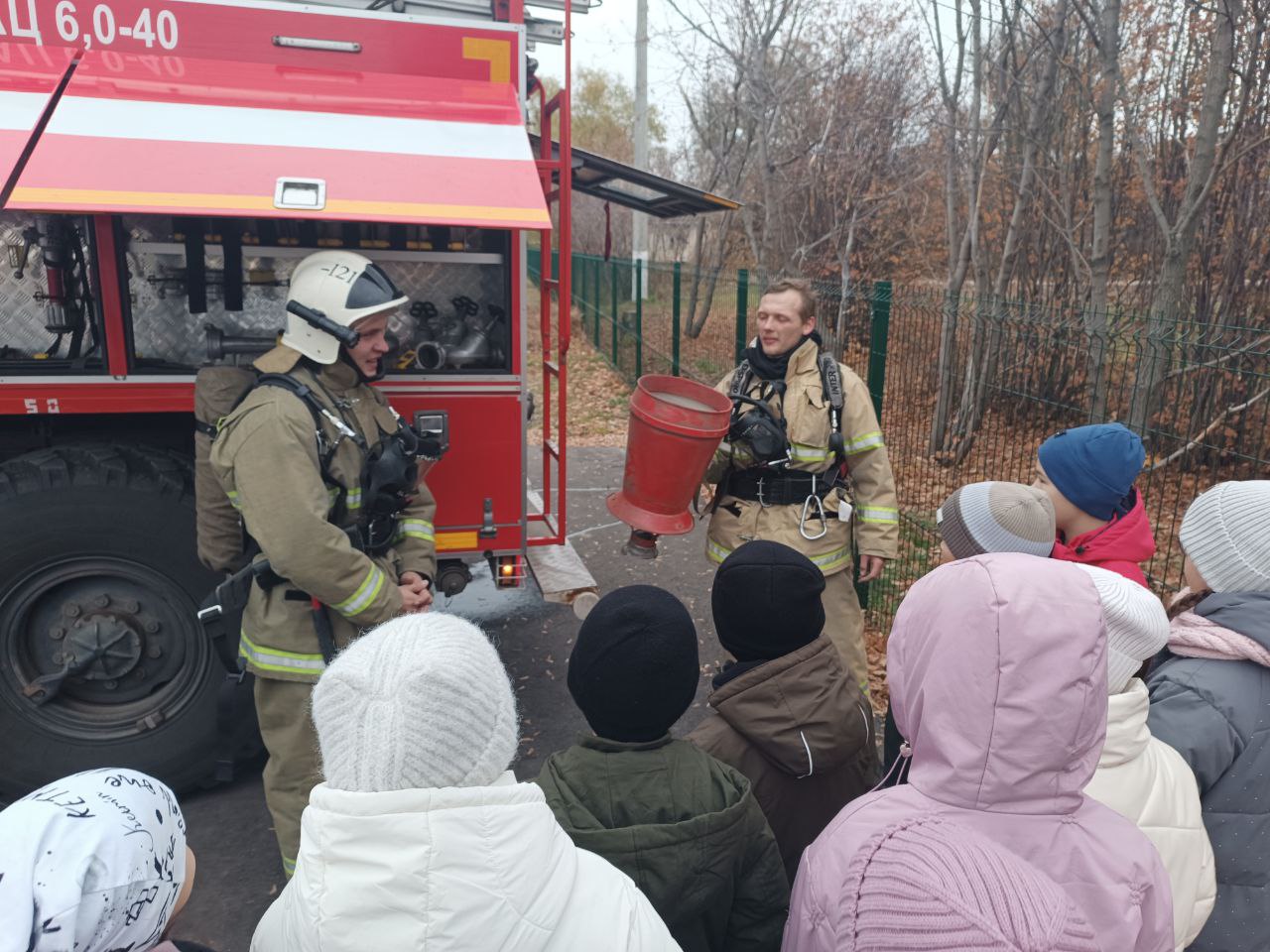По завершении пожарно-тактических учений специалисты нашего филиала организовали для детей показ техники и комплектации боевой машины. Кроме этого, начальник караула Константин Кривенков и пожарный Дмитрий Терентьев в доступной форме рассказали ребятам о профессии пожарного и простых правилах пожарной безопасности, которые в обязательном порядке нужно соблюдать.