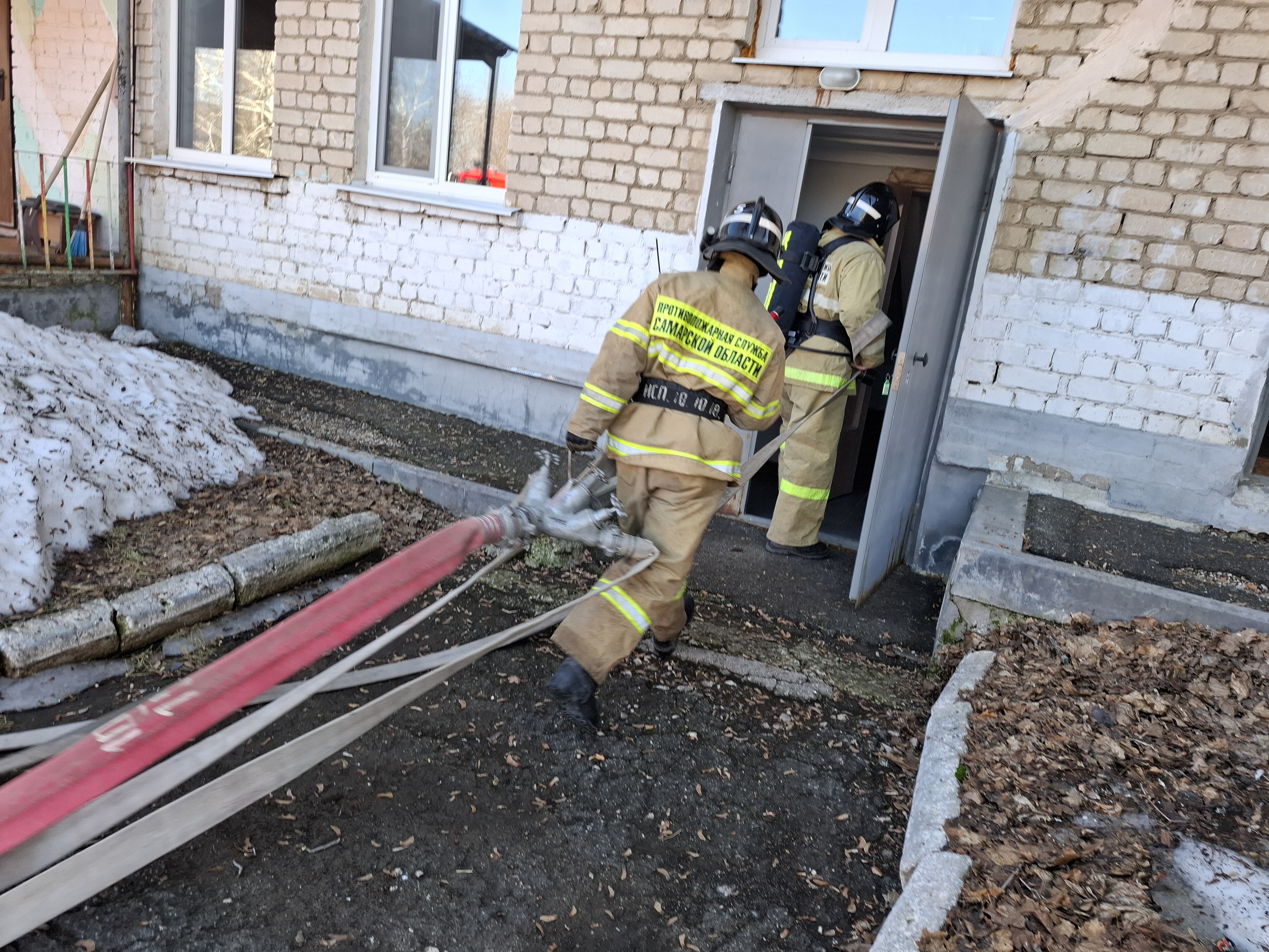 Под руководством начальника пожарно-спасательной части № 105 пожарно-спасательного отряда № 36 филиала облГКУ «Центр по делам гражданской обороны, пожарной безопасности и чрезвычайным ситуациям» Александра Сецко было проведено плановое учение на территории центра детского творчества «Радуга».
