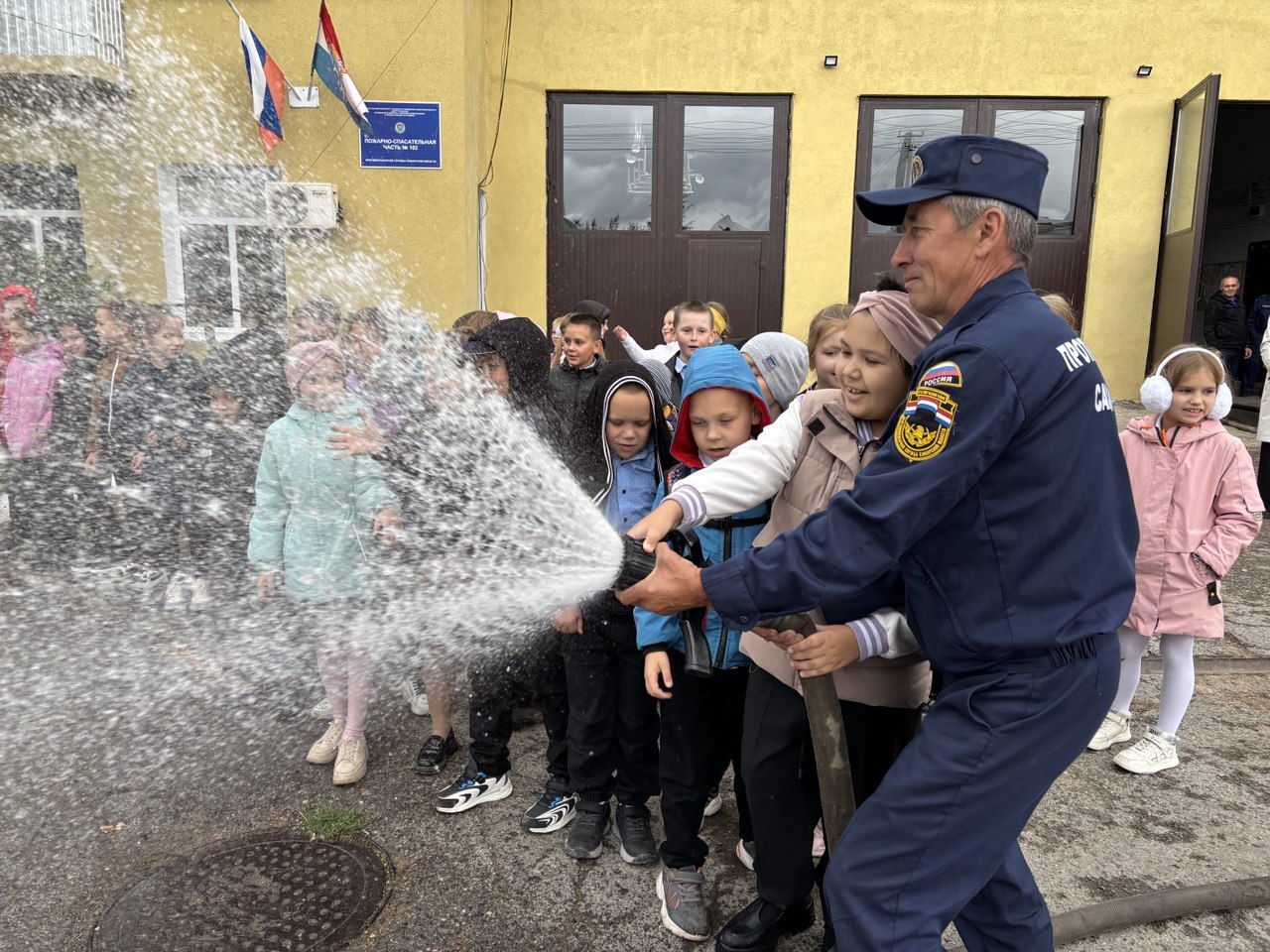 Особый восторг у детворы вызвала подача воды из пожарного ствола. Традиционно в завершении экскурсии огнеборцы напомнили ребятам правила пожарной безопасности, а также номера вызова пожарно-спасательной службы «101» и «112».