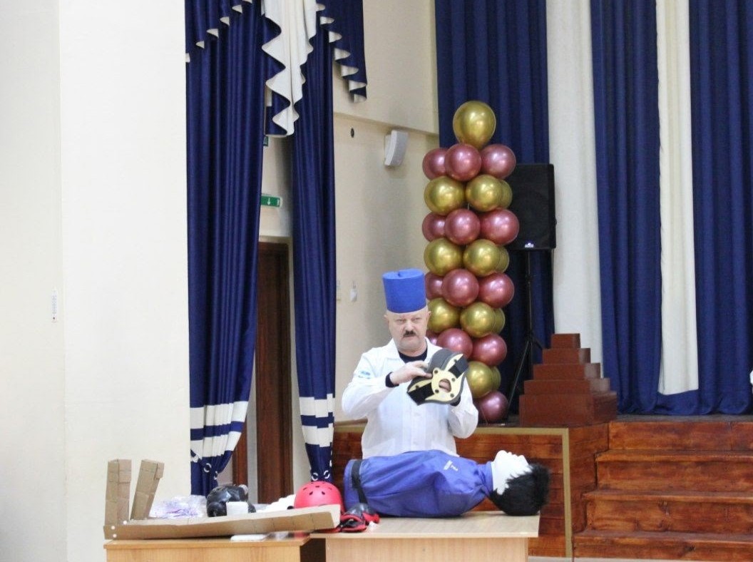 В целях профилактики перед ребятами выступил и начальник караула пожарной части пожарно-спасательной части № 118 филиала ГКУ СО «Центр по делам ГО, ПБ и ЧС» Константин Целлер. Константин Сергеевич рассказал о действиях и навыках оказания первой помощи и деблокирования людей пожарными-спасателями.
