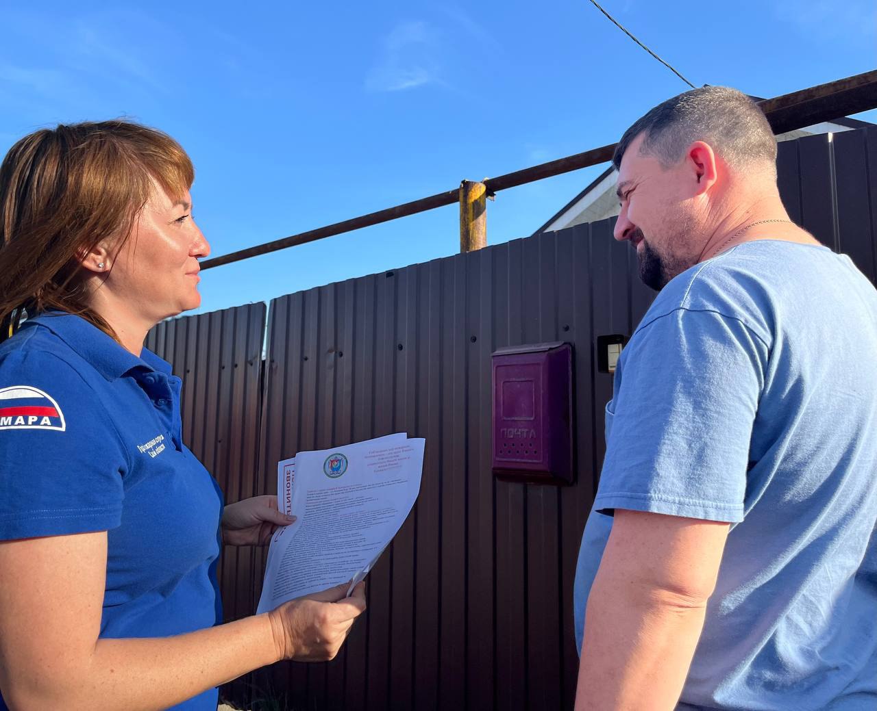 Инструктор противопожарной профилактики Отряда № 34 филиала государственного казенного учреждения Самарской области «Центр по делам ГО, ПБ и ЧС» Татьяна Дрыжова провела беседу с гражданами о правилах соблюдения пожарной безопасности, мерах предосторожности и действиях в случае возникновения чрезвычайной ситуации.