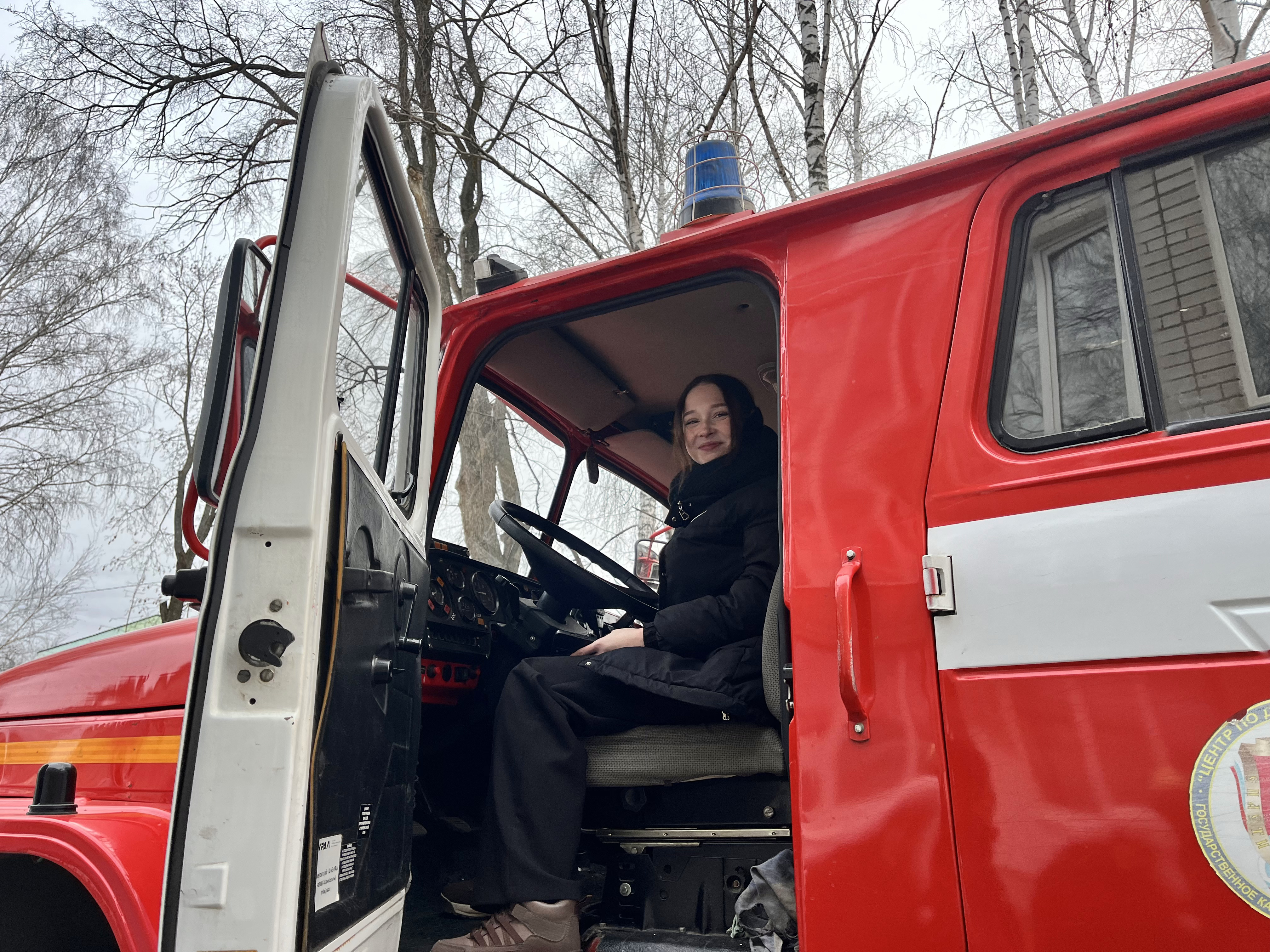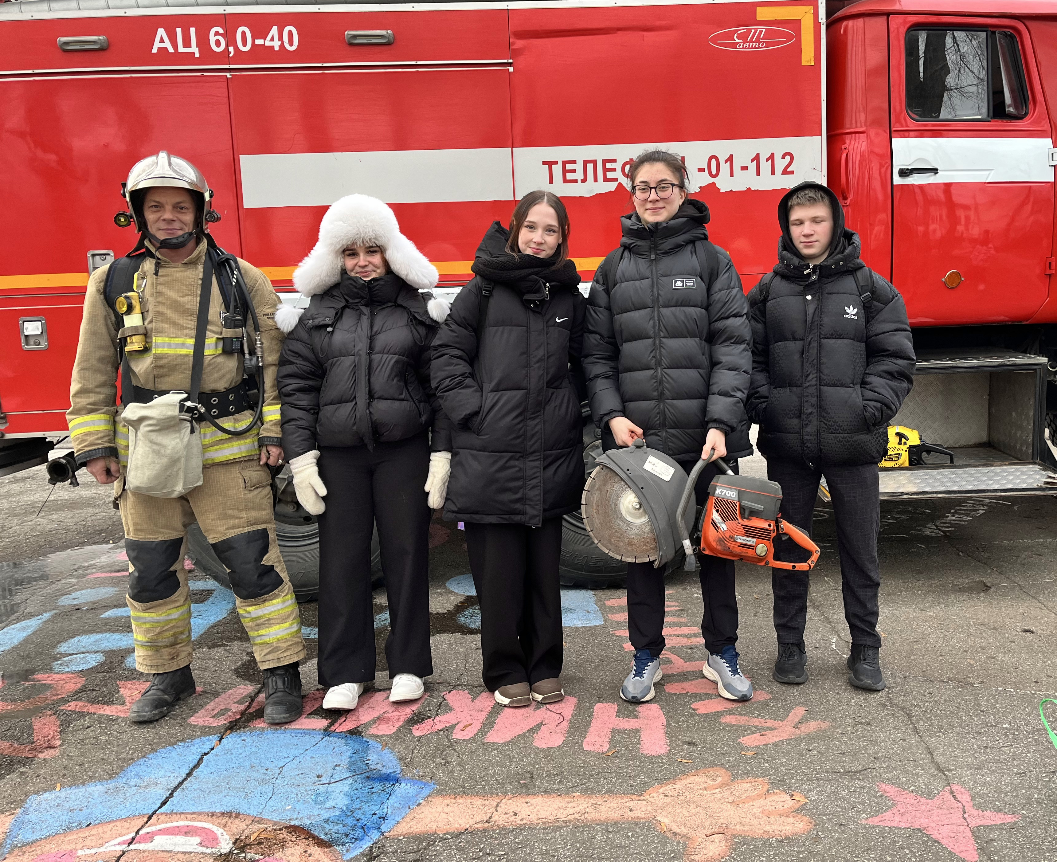 Также ребятам предоставили возможность примерить элементы боевой одежды и посидеть в пожарном автомобиле.