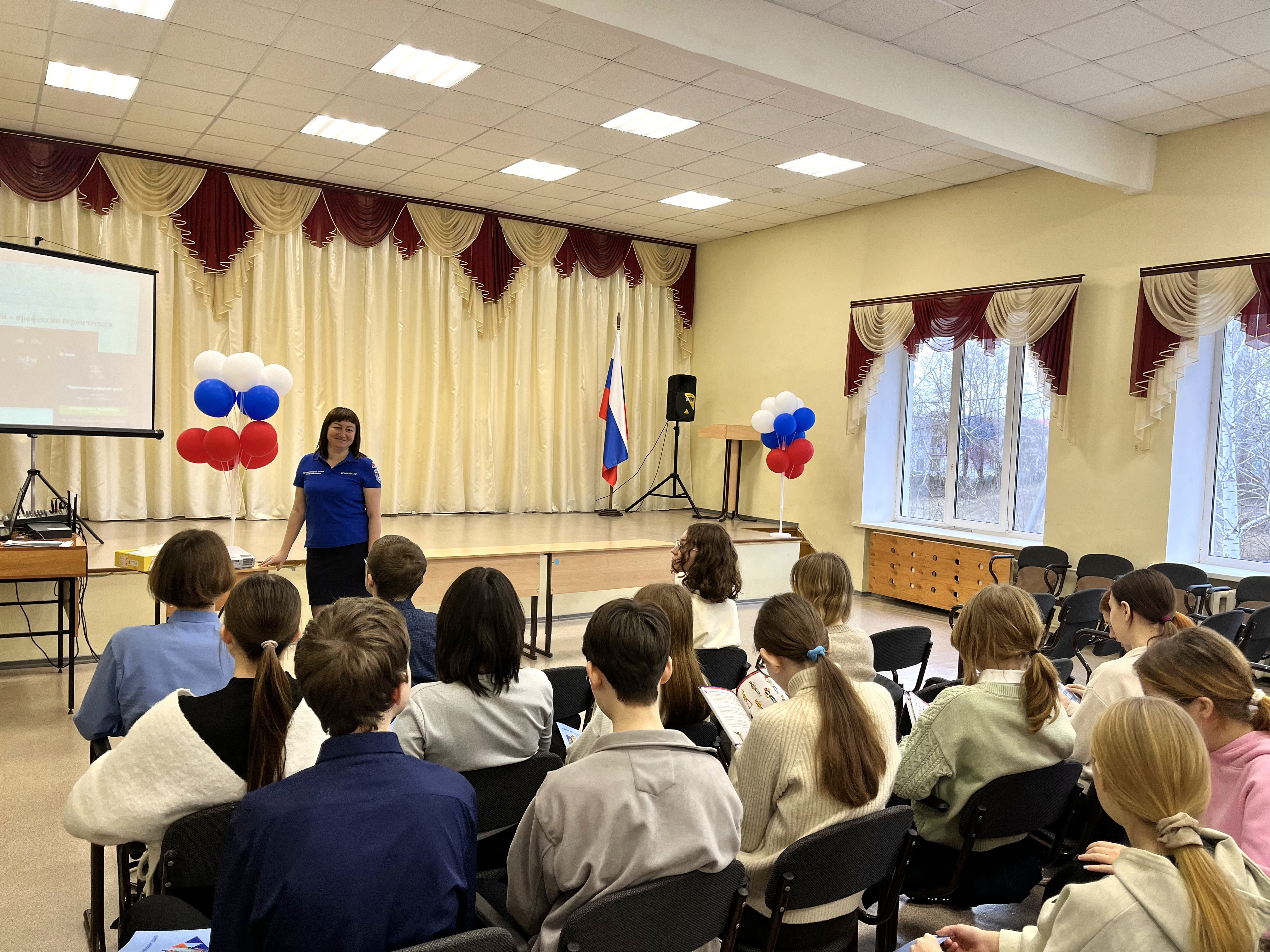 Представители пожарно-спасательного отряда № 34 филиала государственного казенного учреждения Самарской области «Центр по делам ГО, ПБ и ЧС» совместно с представителями администрации муниципального района Кинельский и центра занятости провели профориентационную беседу с учащимися старших классов в поселке Комсомольский Кинельского района. Инструктор противопожарной профилактики Татьяна Дрыжова выступила с презентацией на тему «Пожарный - профессия героическая», подробно рассказала о буднях пожарных, о том, какими качествами должен обладать огнеборец.