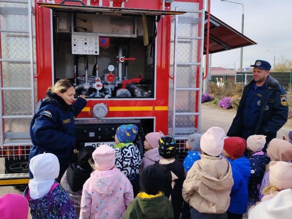 В октябре в Большеглушицком районе инструктор противопожарной профилактики пожарно-спасательной части № 132 филиала облГКУ «Центр по делам ГО, ПБ и ЧС» Елена Сафонова встретилась с учащимися школ и воспитанниками детских садов.
