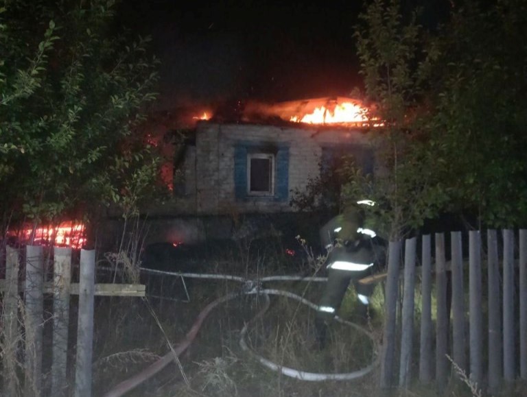 Сегодня ночью в поселке Нижнеозерецкий Приволжского района на площади 60 квадратных метров горел дом