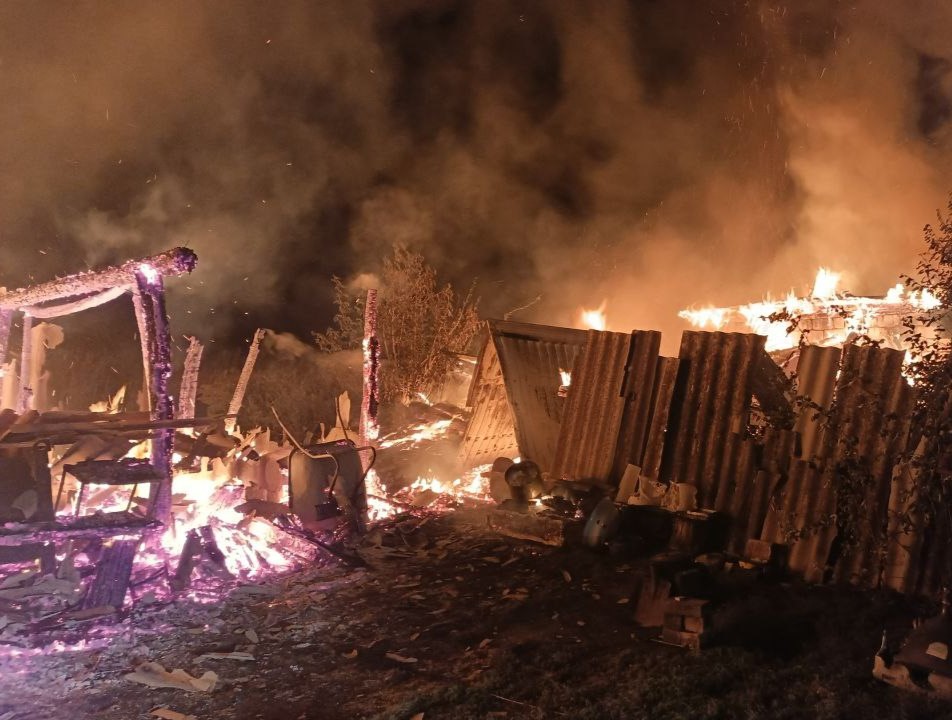 По прибытии было установлено, что горят хозяйственные постройки на площади 70 квадратных метров, существует угроза распространения огня на соседние строения.