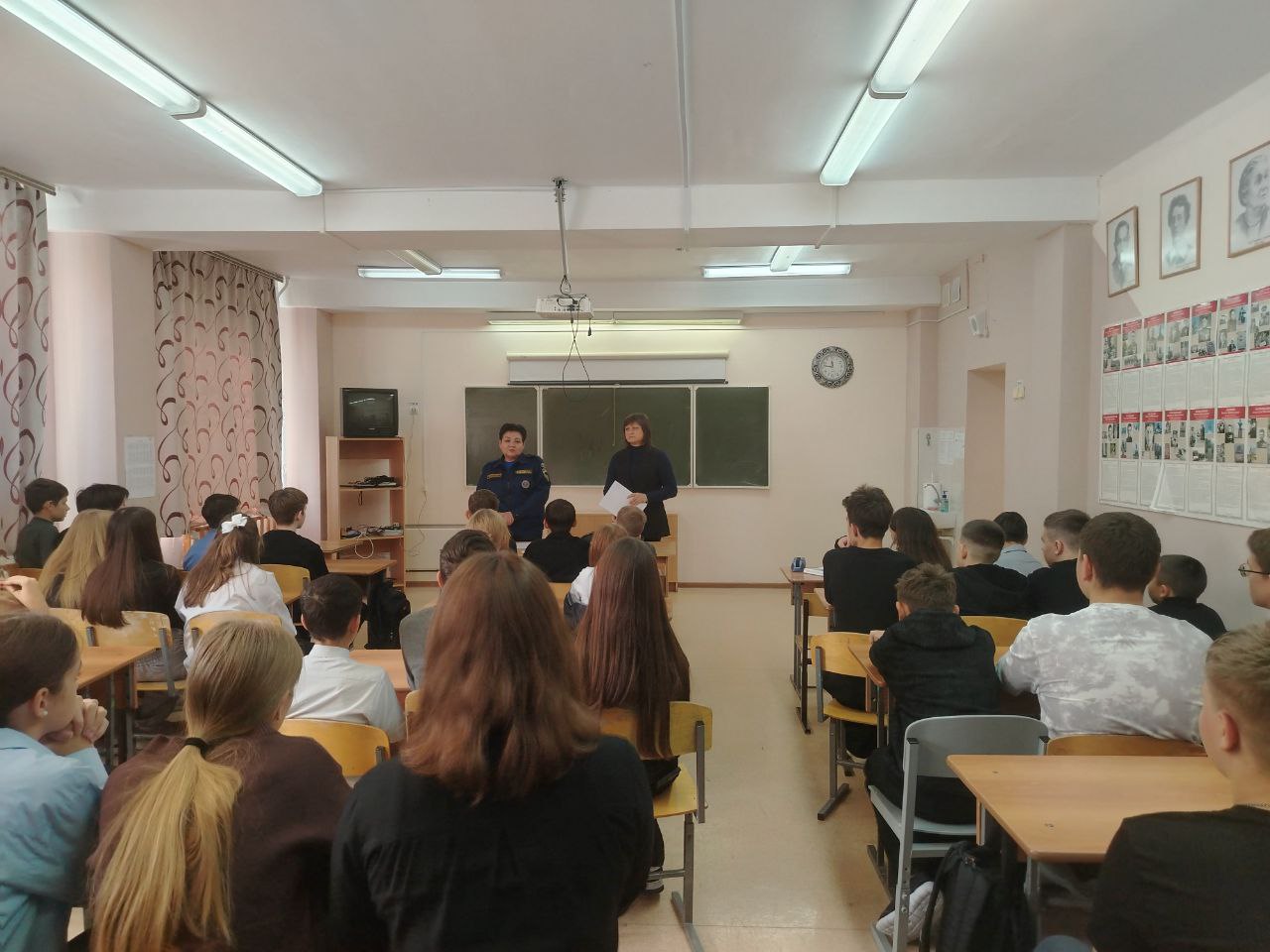 В рамках Всероссийского открытого урока, приуроченного ко Дню гражданской обороны Российской Федерации, инструктор противопожарной профилактики пожарно-спасательного отряда № 15 филиала областного ГКУ «Центр по делам ГО, ПБ и ЧС» Богатовского района Елена Пантелеева провела с учениками школы села Печинено и студентами сельскохозяйственного техникума беседы по порядку действий и правилах поведения при получении сигнала оповещения «Внимание всем!».