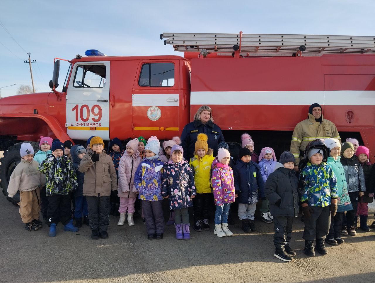 В целях недопущения гибели и травматизма детей в результате опасных факторов пожара на днях специалисты пожарно-спасательной части № 109 пожарно-спасательного отряда № 40 Сергиевского района филиала облГКУ «Центр по делам ГО, ПБ и ЧС» провели выездной показ пожарной техники для ребят из детского сада «Петушок» поселка Сургут.