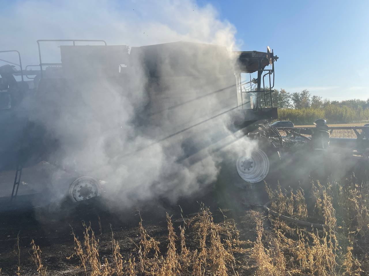 В Ставропольском районе во время движения загорелся комбайн