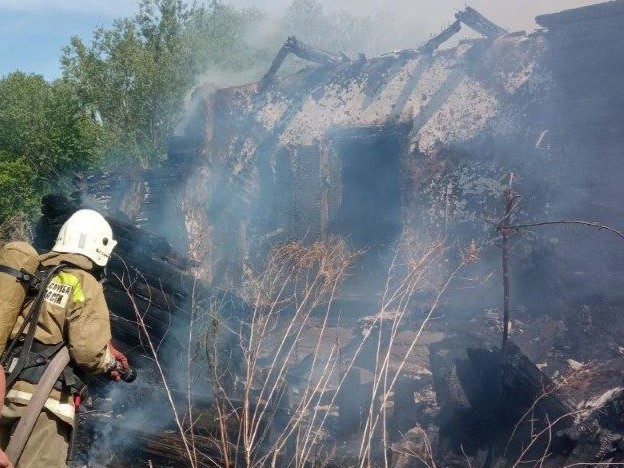 По прибытии было установлено, что горит дом на площади 70 квадратных метров, произошло обрушение кровли.