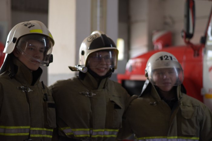 Для популяризации профессии пожарных-спасателей ребятам организовали экскурсию в подразделение, которую провели ветеран пожарной охраны – начальник караула Иван Репин и пожарный Степан Носов.