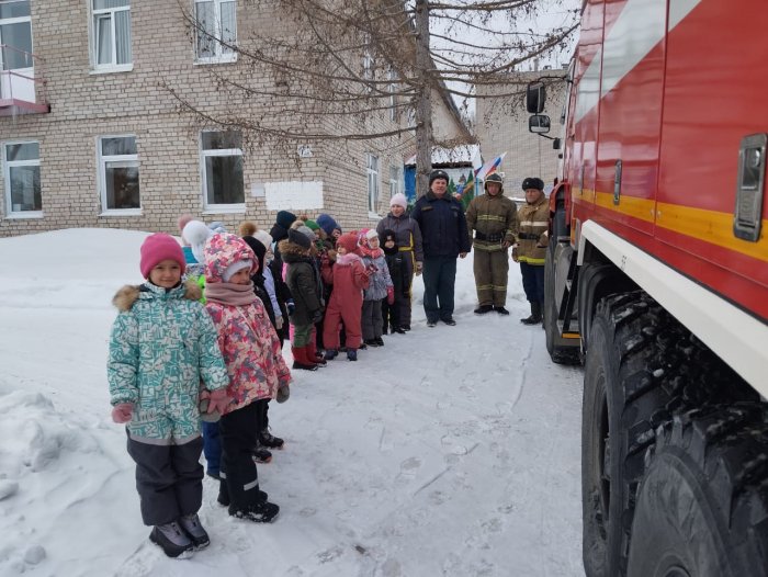 Личный состав провел занятия с воспитанниками дошкольного образовательного учреждения на тему «Спички детям не игрушки». Специалисты показали оснащенность пожарного автомобиля, рассказали, для чего нужен пожарный инвентарь, что и кого везет пожарная машина.