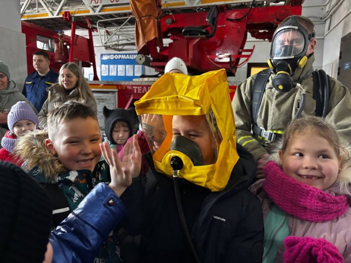 Командир отделения Михаил Марков встретил юных гостей и провел увлекательную экскурсию по пожарной части: показал ребятне учебный класс, диспетчерский пункт, гараж боевых машин. Особой радостью для детей стало знакомство с пожарной техникой, ведь им не просто рассказали, как устроены машины и для чего нужно каждое устройство, а подарили шанс почувствовать себя настоящими отважными огнеборцами: сначала зажгли проблесковые маячки автоцистерны, затем разрешили заглянуть в кабину пожарного автомобиля — дети с интересом изучали её устройство. А в завершение каждый смог примерить каску пожарного и средства индивидуальной защиты.