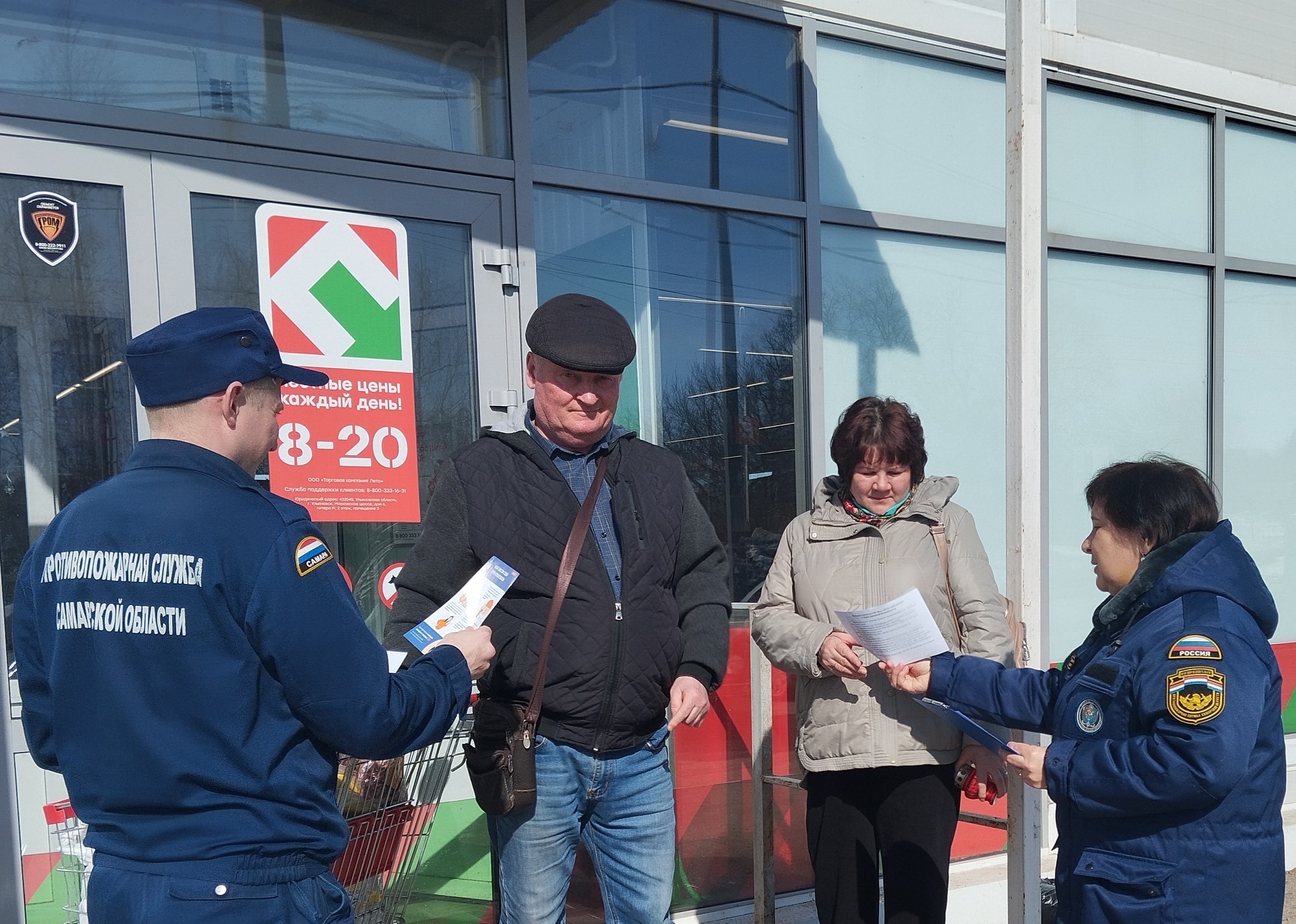 В процессе общения с гражданами, наши специалисты объяснили важность соблюдения правил пожарной безопасности в преддверии весенне-летнего пожароопасного периода, напомнили алгоритм действий в случае обнаружения очага возгорания, правила использования первичных средств тушения огня, номера телефонов экстренных служб.