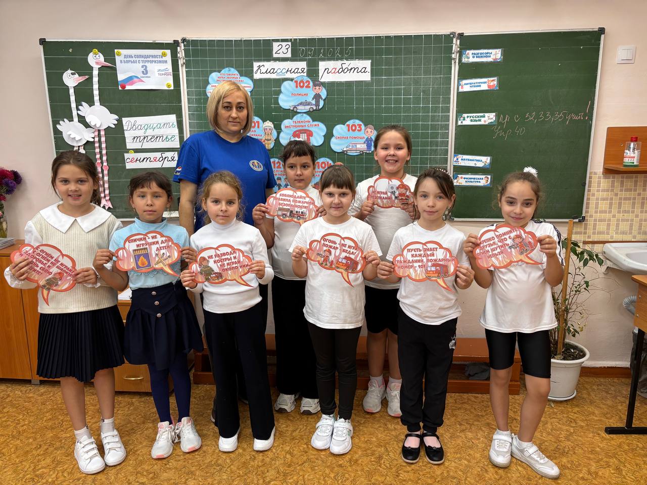 В ходе беседы Наталия Ивановна разъяснила учащимся, как не допустить возгорания, как себя вести, если пожар все-таки случился, напомнила номера телефонов экстренных служб, сделала акцент на том, что ни в коем случае нельзя паниковать и прятаться, а как можно быстрее надо покинуть горящее помещение.