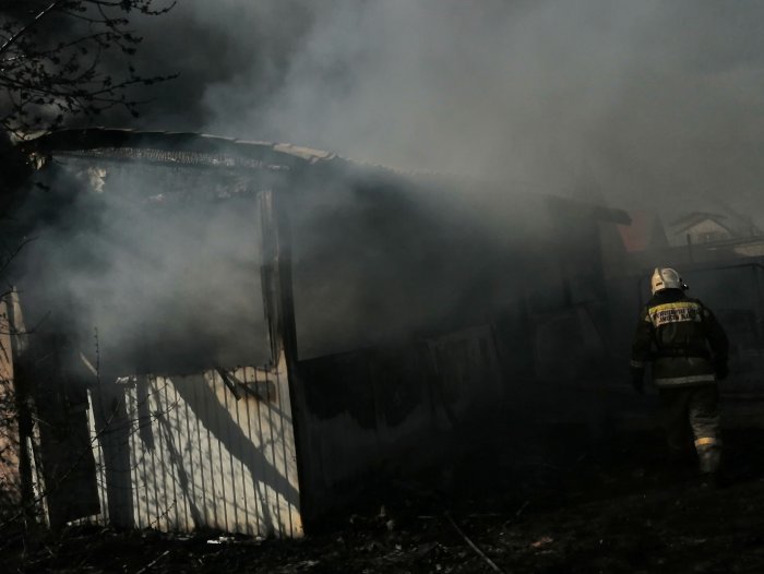 По прибытии было установлено, что горят баня и гараж на площади 50 квадратных метров, существует угроза распространения огня на жилой дом.
