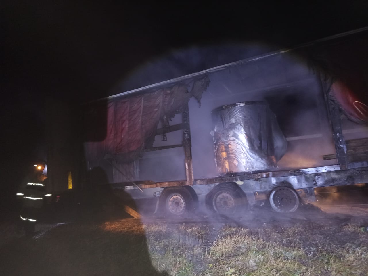 Прибыв к месту ДТП, пожарные-спасатели установили, что произошло возгорание в движении фуры Scania с прицепом.