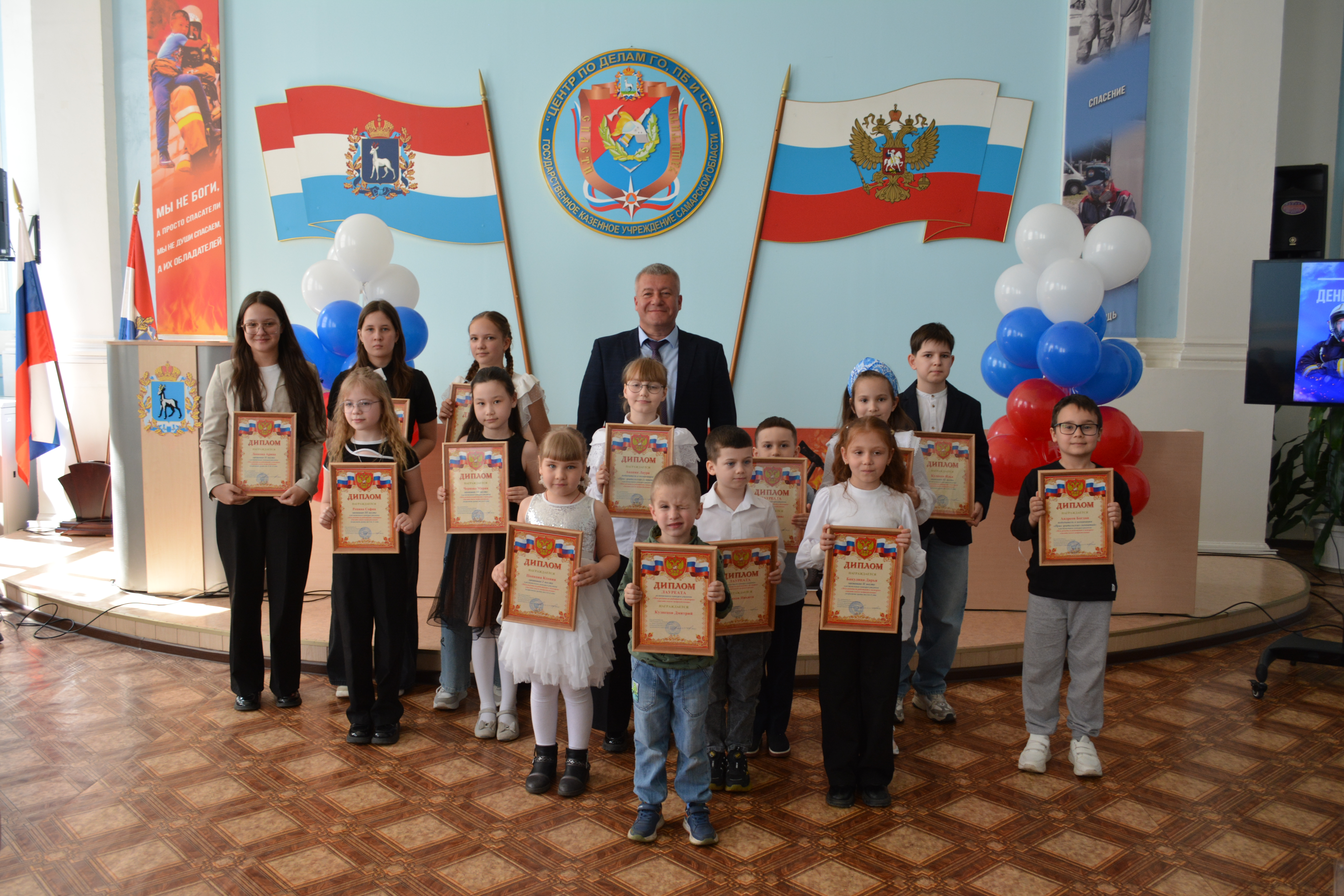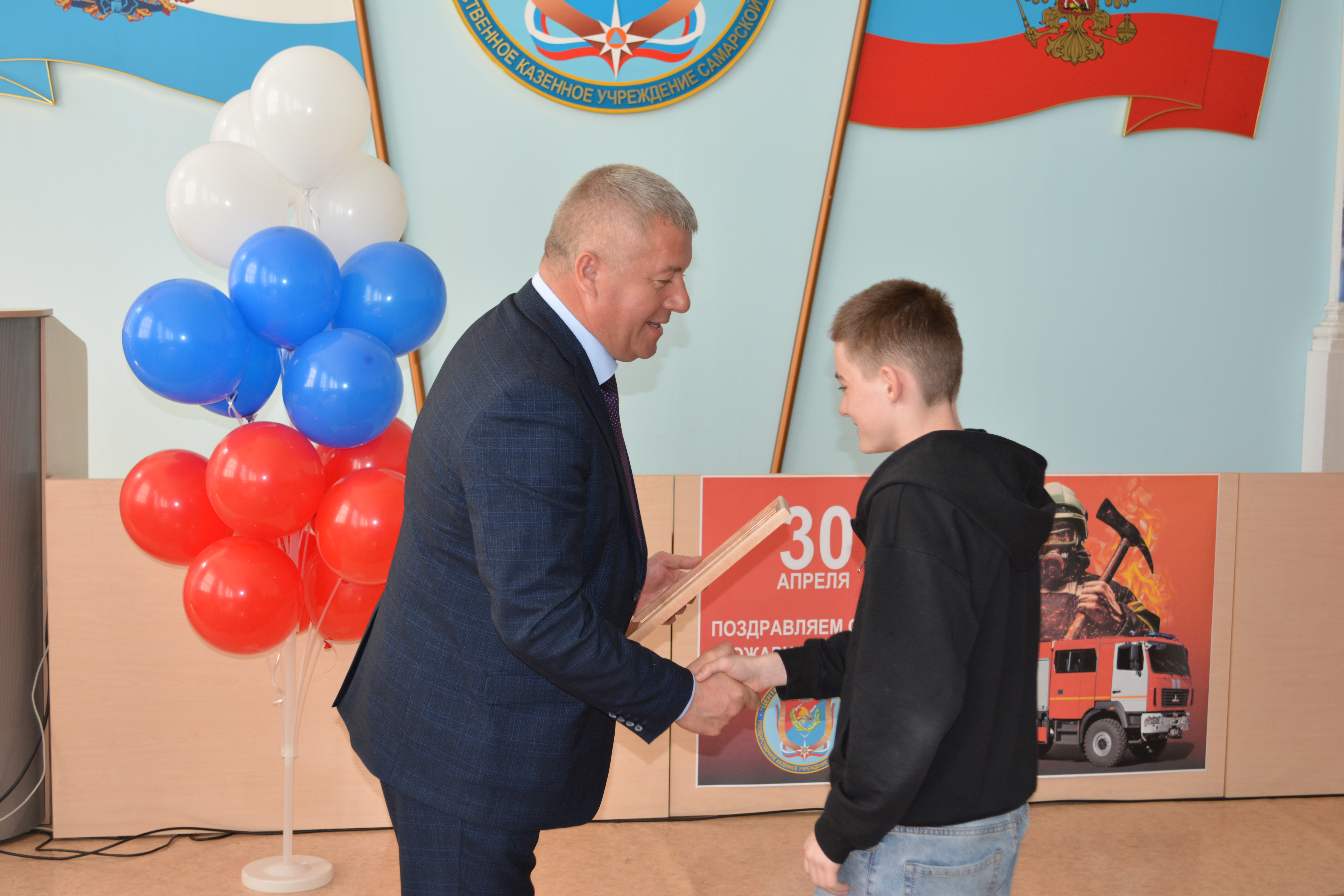 Наряду со взрослыми в ходе праздника были награждены и юные художники – победители и лауреаты регионального этапа конкурса «Мои родители работают в пожарно-спасательном подразделении». Им Вадим Юрьевич вручил наборы сладостей, предоставленные банком ВТБ, а также дипломы и призы. Награды получили и наши юные помощники 16-летний Роман из Красноярского района и 13-летний Андрей из Кошкинского района, которые своими смелыми действиями помогли предотвратить беду.