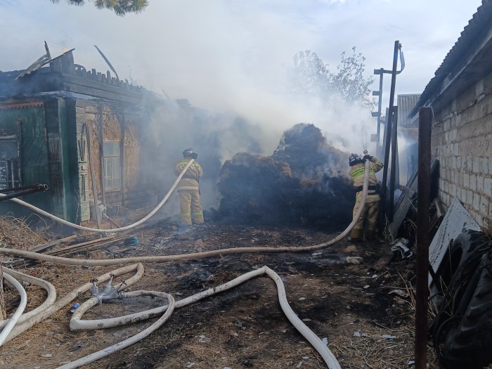По прибытии было установлено, что горят жилой дом на площади 100 квадратных метров и 10 тонн сена.