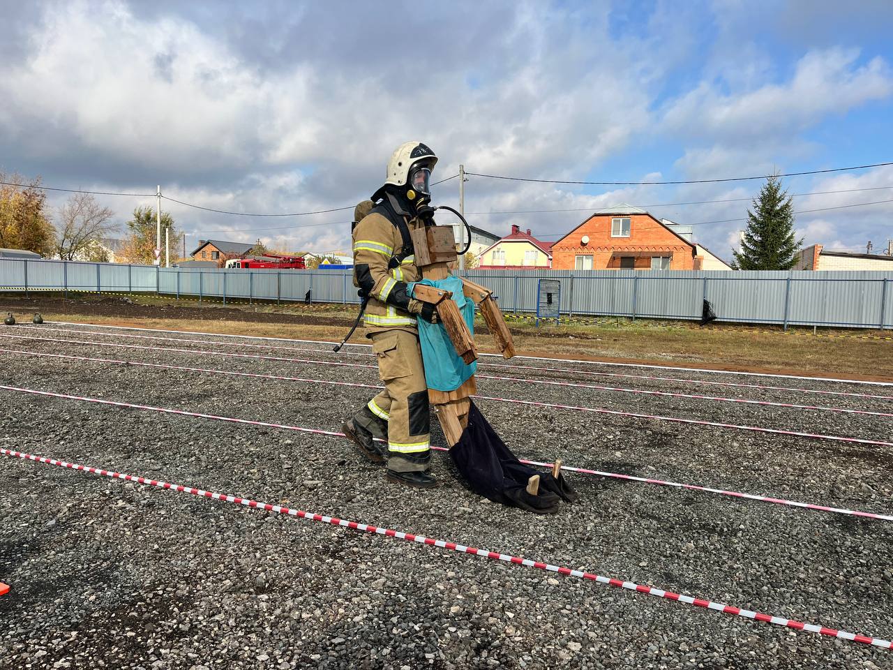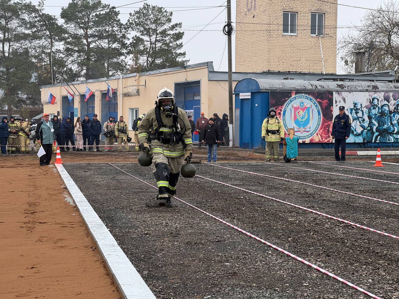 На первом этапе в рамках «Силовой эстафеты» участникам необходимо было оперативно преодолеть установленное расстояние с двумя 24 килограммовыми гирями, затем - проложить рукавную линию и подтянуть рукав, переместить колесо от автомобиля «Урал», перетащить «пострадавшего» и перенести два пожарных рукава, сложенных «гармошкой», по усложненной траектории «зигзагом».