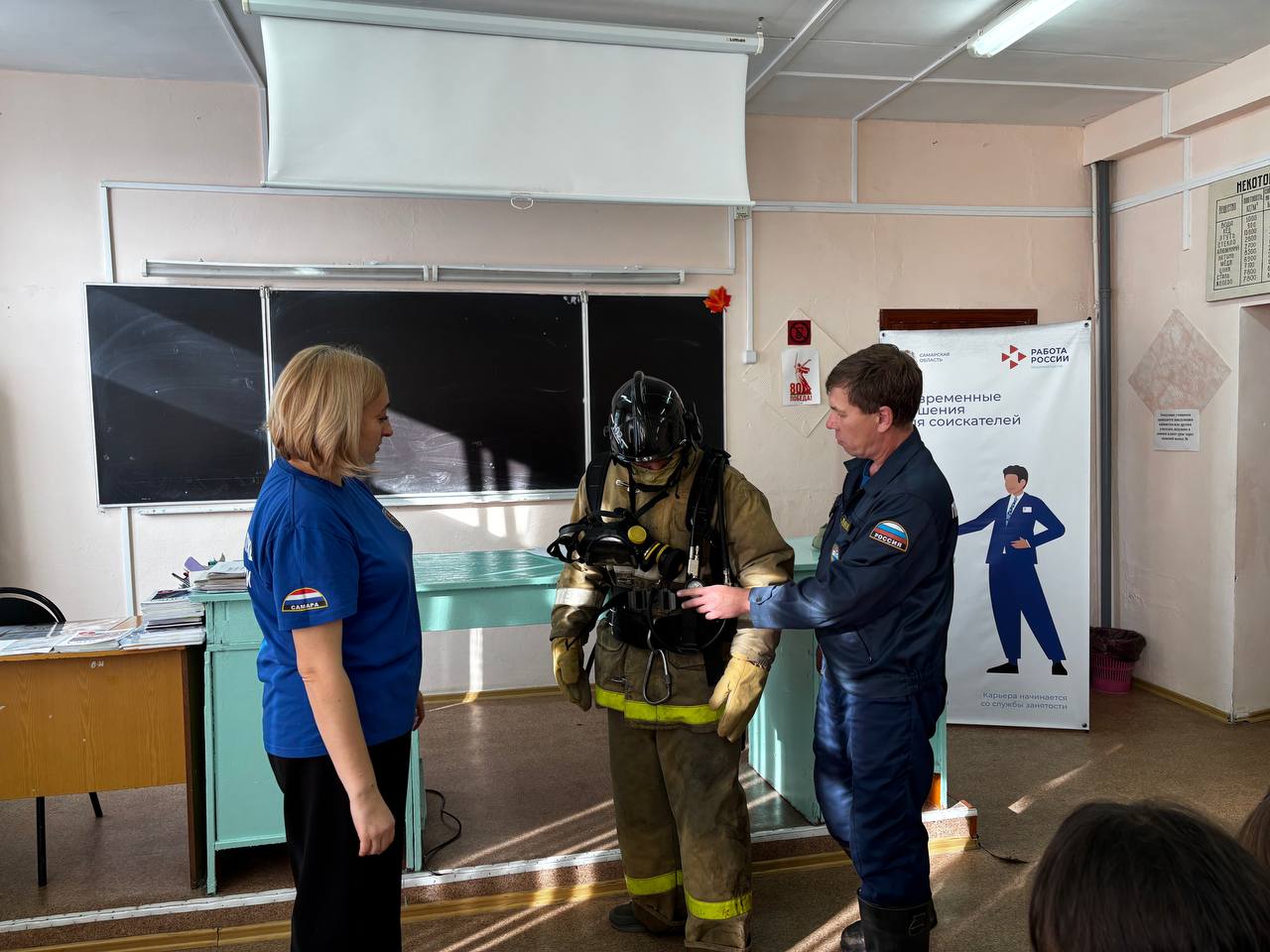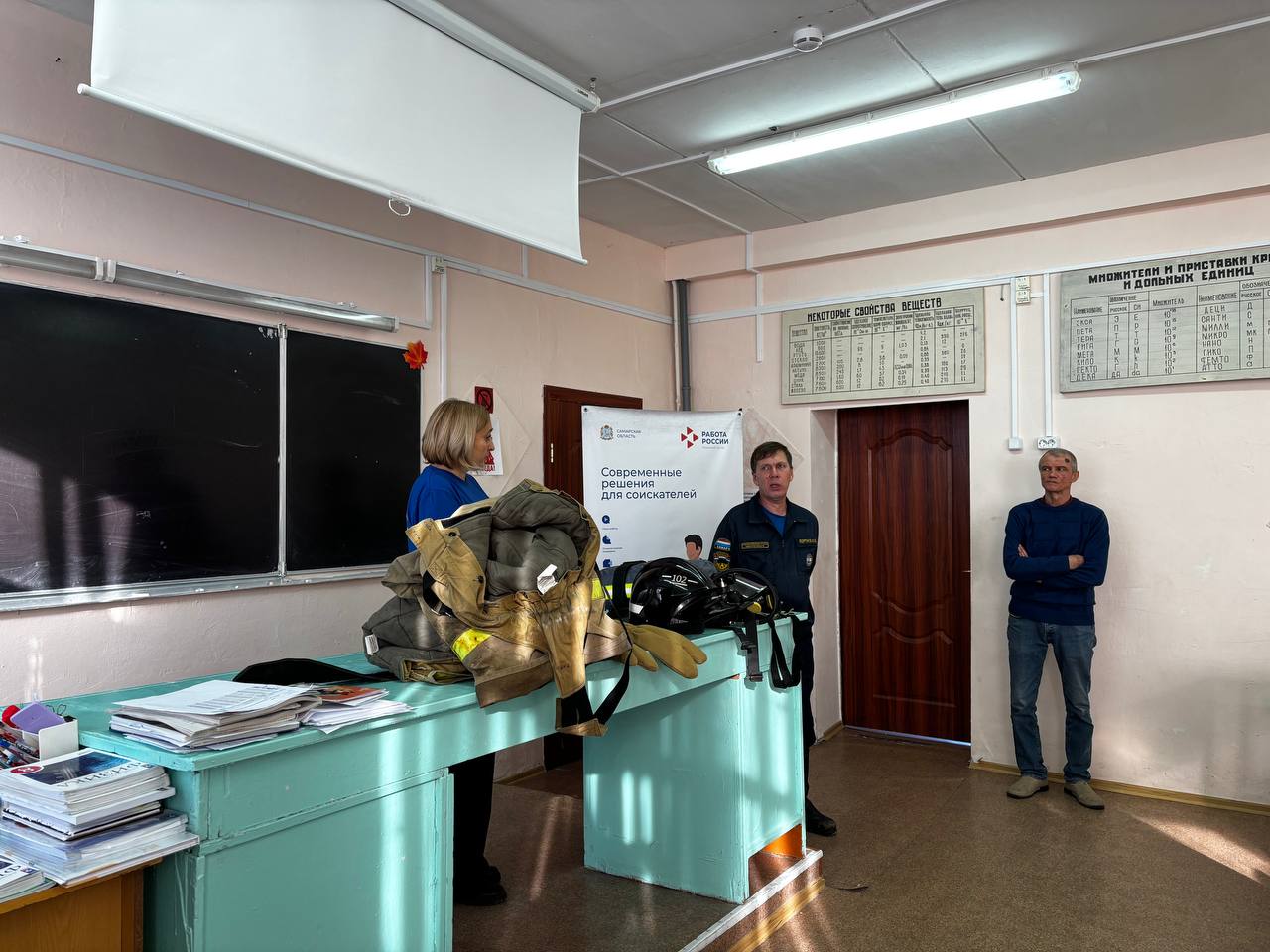 Так, представители пожарно-спасательного отряда № 35 филиала государственного казенного учреждения Самарской области «Центр по делам гражданской обороны, пожарной безопасности и чрезвычайным ситуациям» совместно с специалистами территориального центра занятости населения провели профориентационную встречу со школьниками 8 - 9 классов школы № 7 города Похвистнево, чтобы популяризировать профессию пожарного и помочь старшеклассникам определиться с выбором будущей профессии.