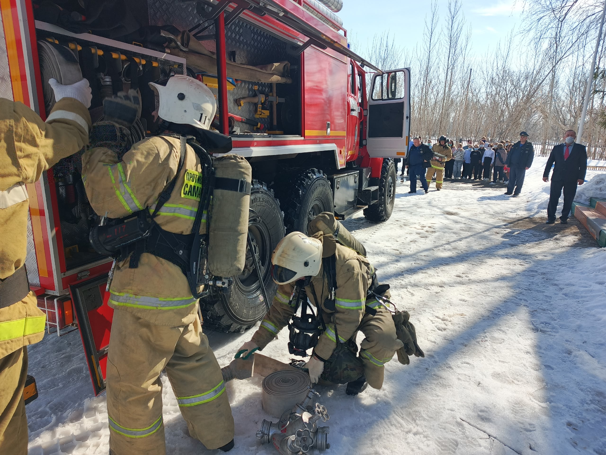 В соответствии с планом мероприятий деятельности пожарно-спасательными частями №№ 117 и 139 пожарно-спасательного отряда №15 филиала ГКУ «Центр по делам ГО, ПБ и ЧС» было проведено пожарно-тактическое учение в общеобразовательном учреждении села Аверьяновка.