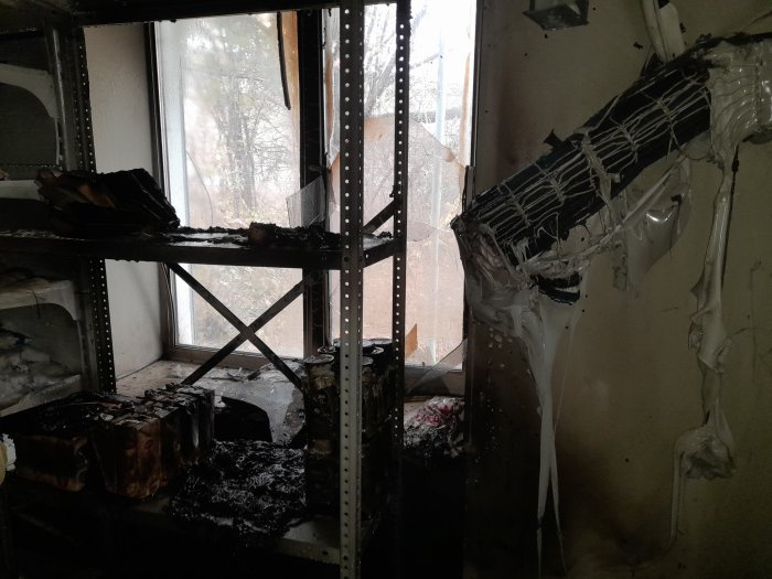 По прибытии начальник караула сообщил, что в административном здании горят кондиционер и стеллажи с товаром на площади 3 квадратных метра.