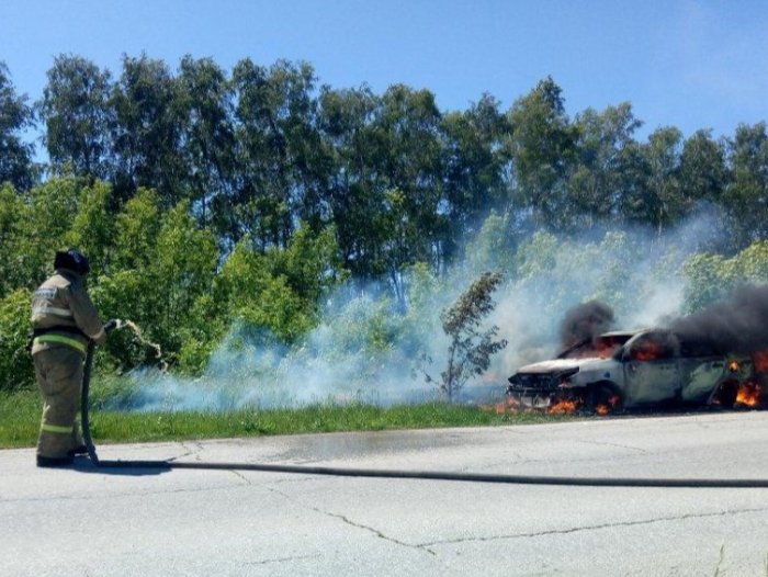 Сегодня в Красноармейском районе на проселочной дороге вблизи поселка Братский горел автомобиль