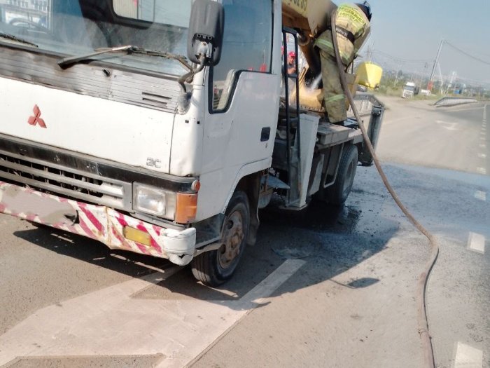 Сегодня в Волжском районе произошло возгорание во время движения грузового транспортного средства Mitsubishi