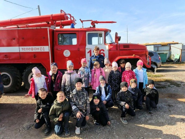 В теплый осенний день первоклассники из государственного бюджетного образовательного учреждения средней образовательной школы поселка Ленинский посетили пожарно-спасательную часть № 126 филиала ГКУ СО «Центр по делам ГО, ПБ и ЧС».