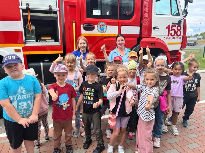 С большим восхищением ребята рассматривали спецтранспорт и примеряли одежду пожарных.