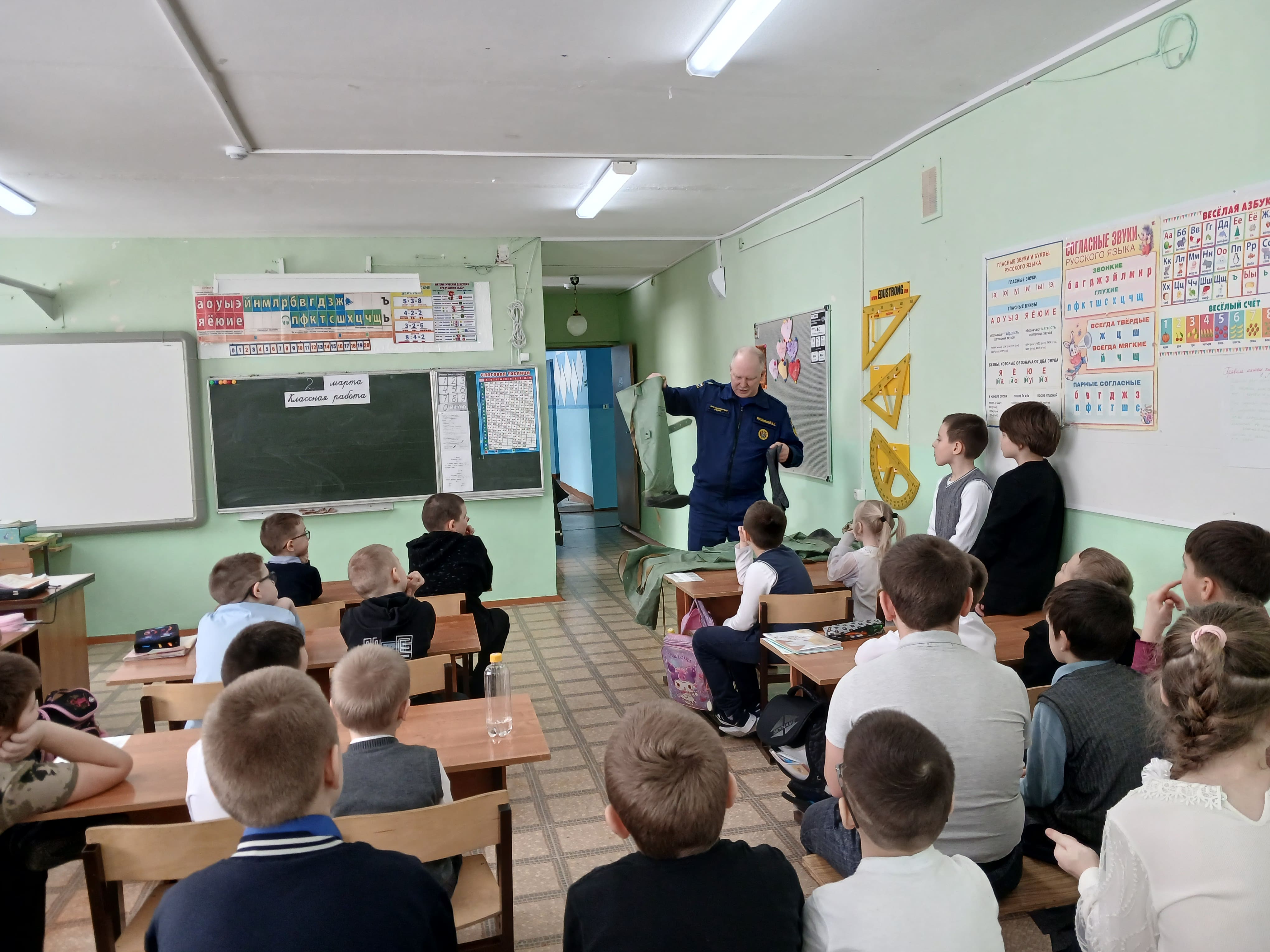 Заместитель начальника пожарно‑спасательной части № 119 филиала ГКУ Самарской области «Центр по делам гражданской обороны, пожарной безопасности и чрезвычайным ситуациям» Юрий Михайловский провел для учащихся начальных классов Клявлинской средней общеобразовательной школы № 2 познавательное мероприятие, приуроченное к празднованию Всемирного дня гражданской обороны.