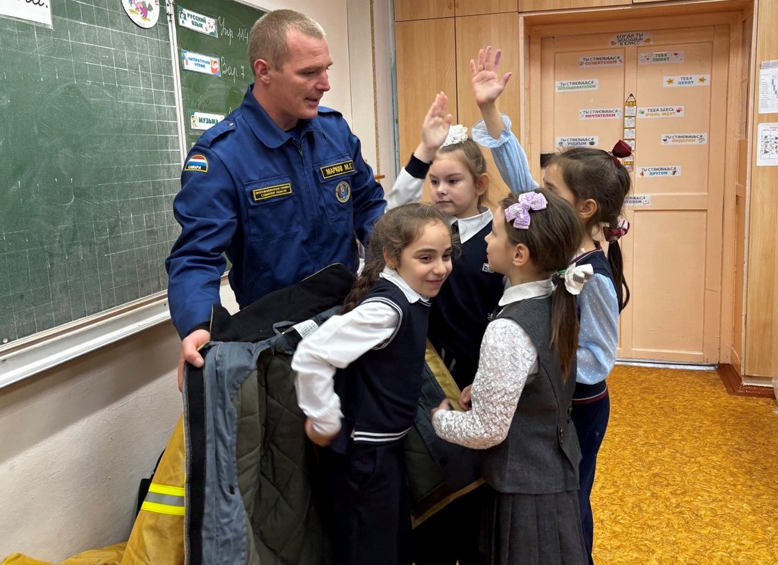 В ходе беседы командир отделения Михаил Марков рассказал школьникам о трудовых буднях огнеборцев, о смелости и отваге, которые необходимы в этой ответственной работе. Инструктор противопожарной профилактики Наталия Кожевникова доступно разъяснила правила пожарной безопасности, рассказала, как правильно вести себя в случае возникновения пожара или другой чрезвычайной ситуации, также повторили номера телефонов экстренных служб.