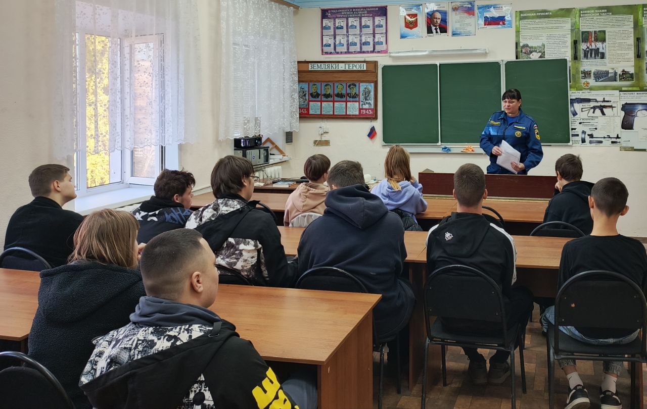 В рамках Всероссийского открытого урока, приуроченного ко Дню гражданской обороны Российской Федерации, инструктор противопожарной профилактики пожарно-спасательного отряда № 15 филиала областного ГКУ «Центр по делам ГО, ПБ и ЧС» Богатовского района Елена Пантелеева провела с учениками школы села Печинено и студентами сельскохозяйственного техникума беседы по порядку действий и правилах поведения при получении сигнала оповещения «Внимание всем!».