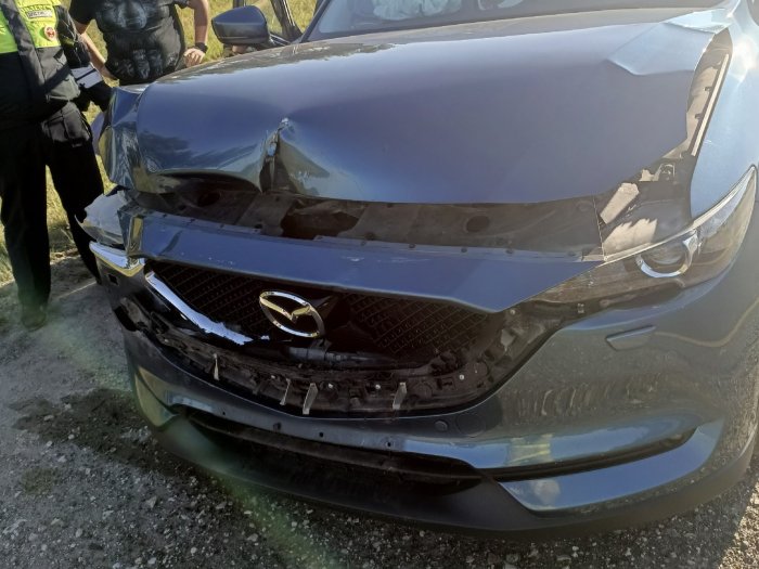 По прибытии пожарные-спасатели установили, что произошло попутное столкновение двух легковых автомашин: Nissan Murano и Mazda СX-5.