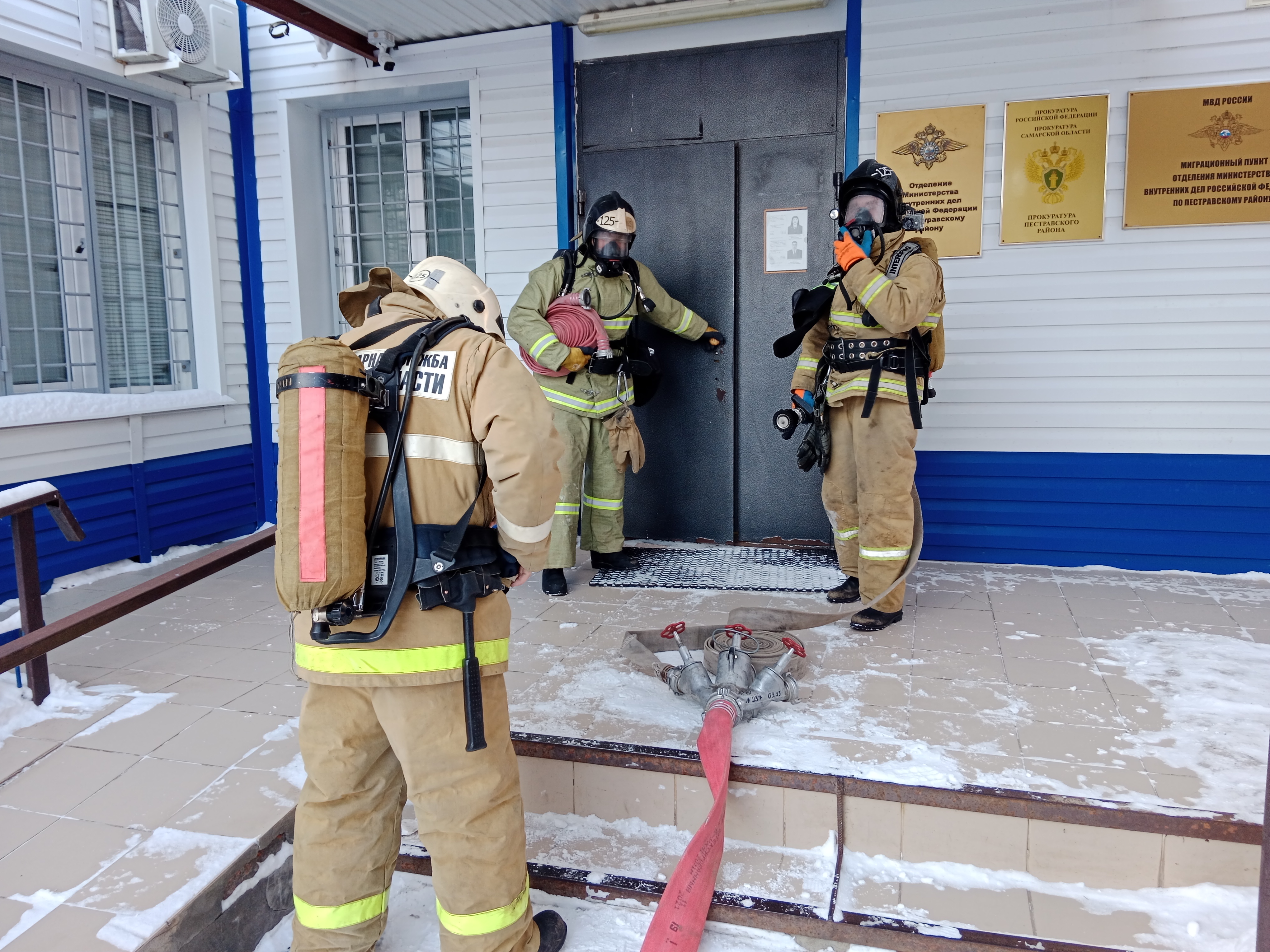 В целях повышения оперативного реагирования на чрезвычайные происшествия дежурный караул пожарно-спасательной части № 125 филиала ГКУ СО «Центр по делам ГО, ПБ и ЧС» провел пожарно-тактическое учение на базе здания отделения МВД России по Пестравскому району.