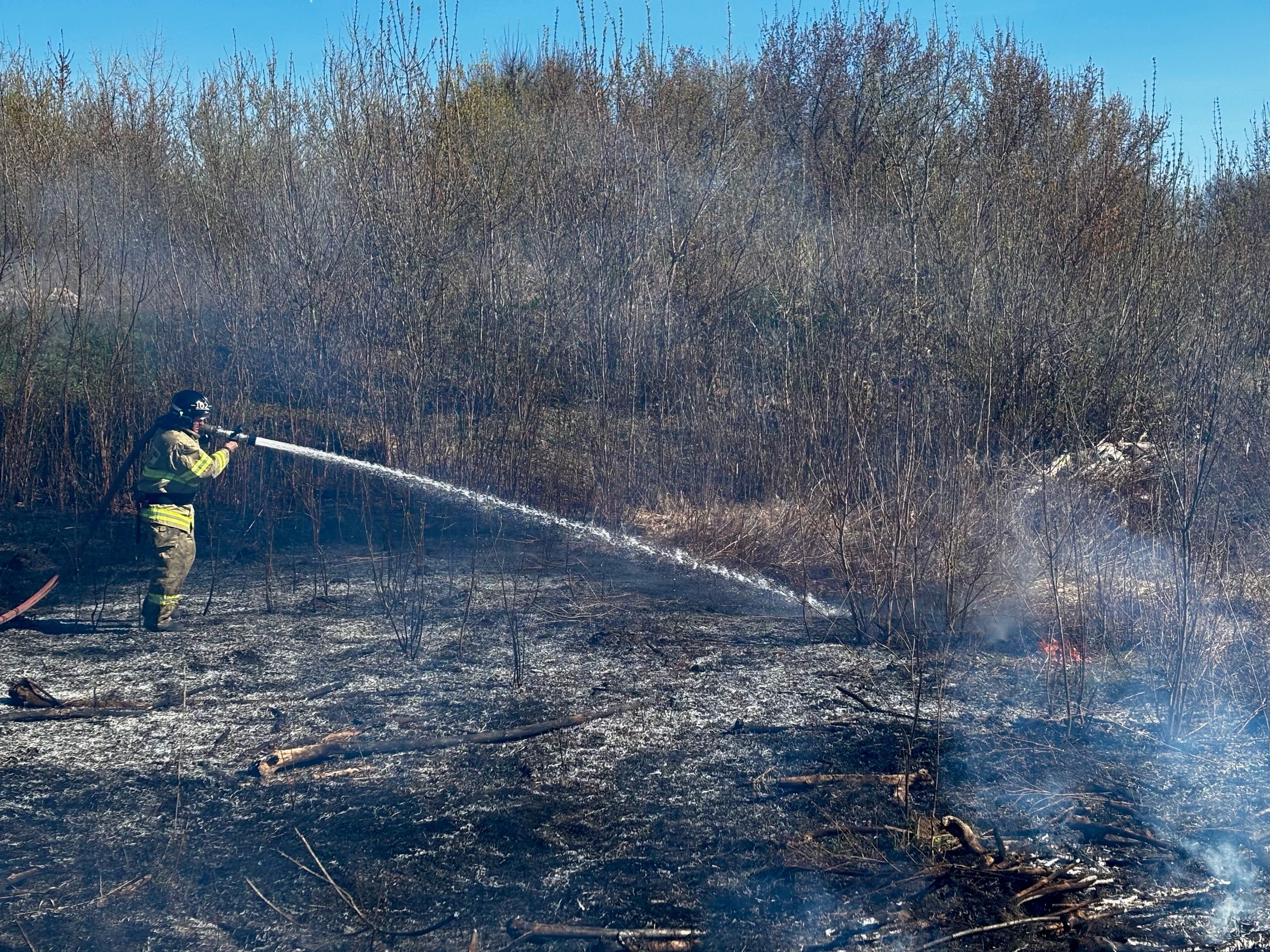 Спустя час, в 10:04, поступило сообщение о возгорании сухой травы в городе Похвистнево, в 700 метрах от улицы Гоголя. На место пожара были направлены два пожарных расчета 102-й Части 35-го Отряда, по прибытии – установлено: горит сухая трава на площади 400 квадратных метров. На тушение были поданы 2 ствола «Б» и 6 ранцевых огнетушителей, в 10:18 - объявлена локализация пожара, в 10:24 – ликвидация открытого горения.