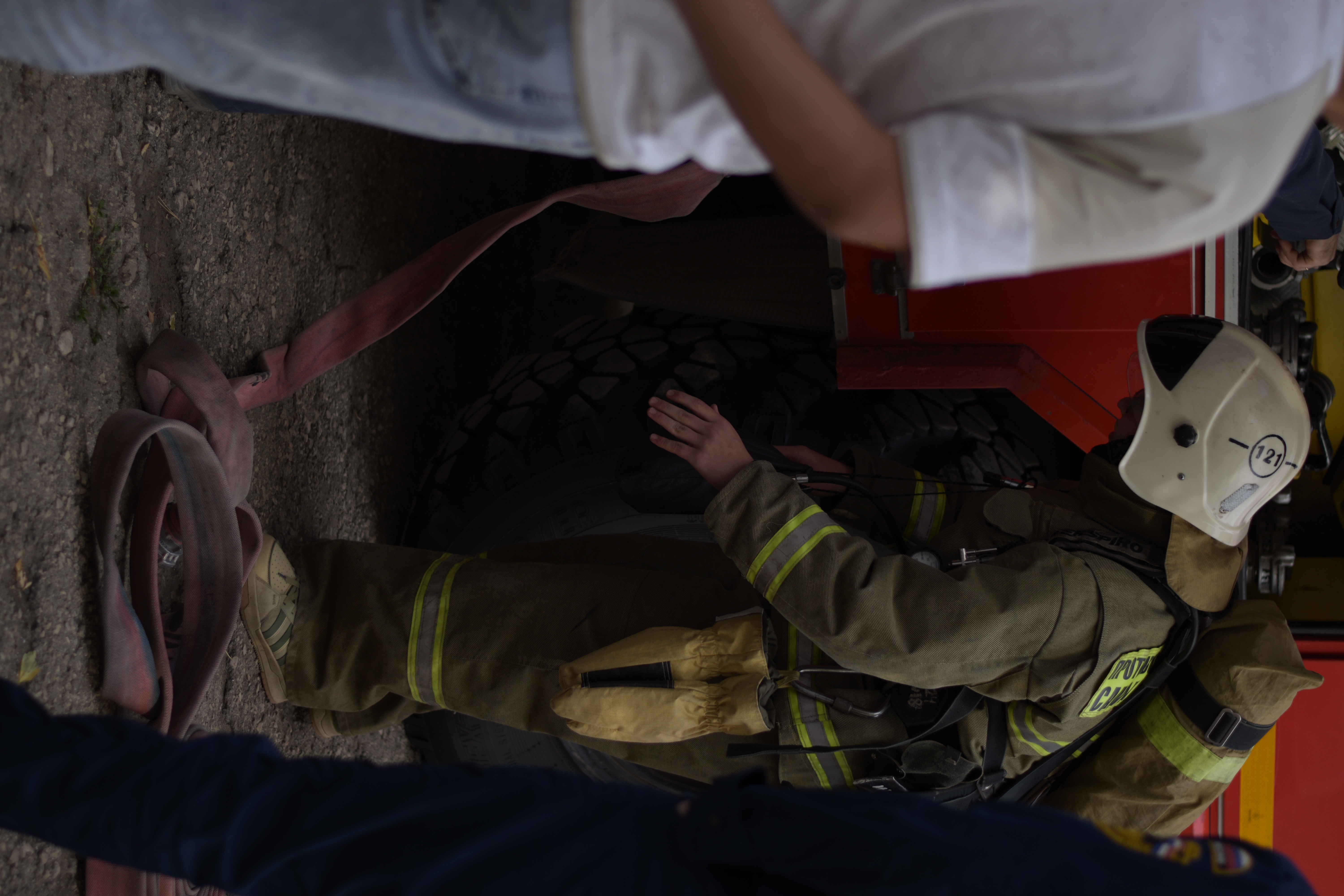 Подрастающее поколение подробно познакомилось с оснащением пожарного автомобиля, со средствами индивидуальной защиты органов дыхания.
