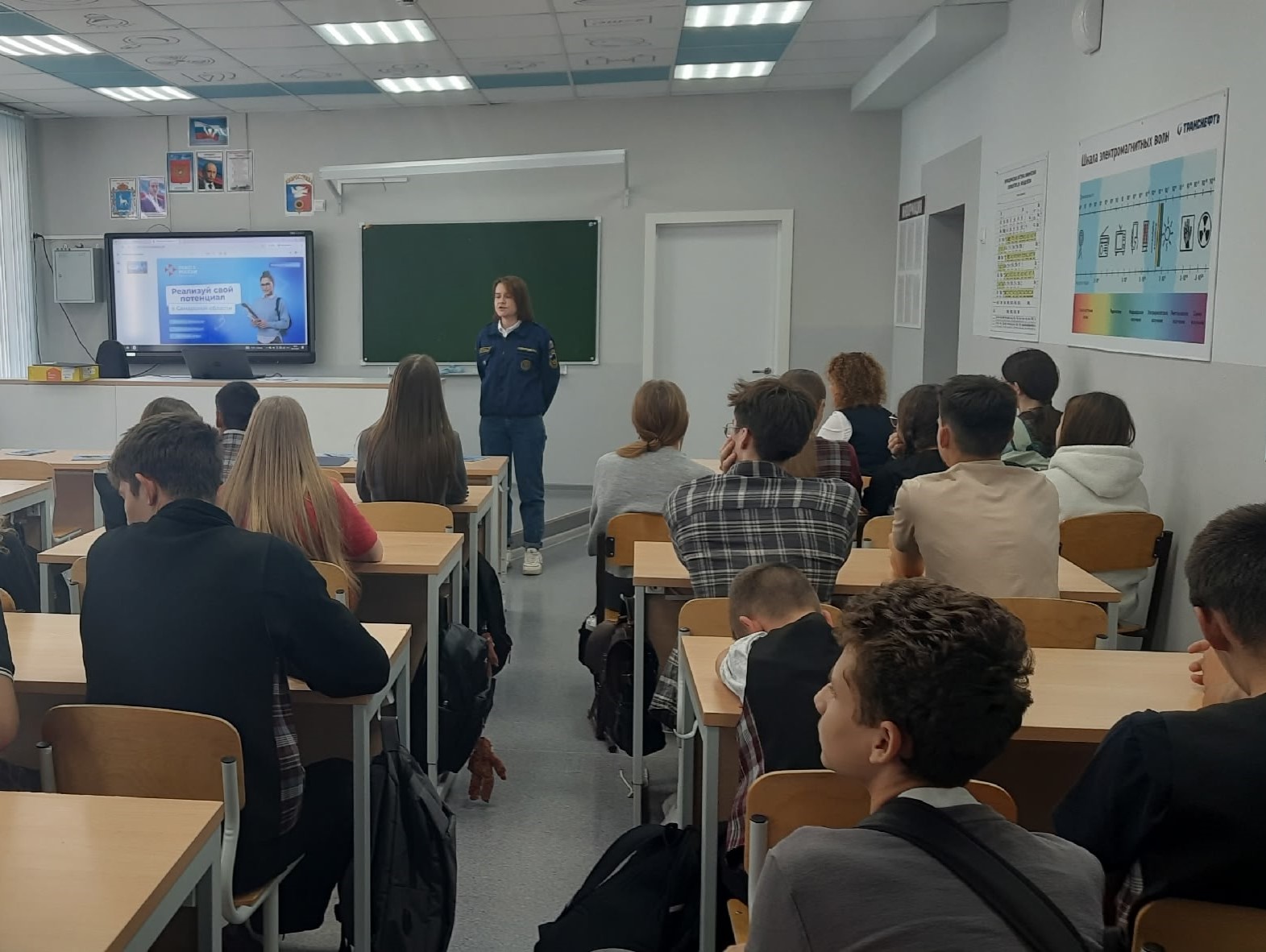 Инструктор противопожарной профилактики пожарно-спасательной части № 121 Отряда № 45 Ирина Сидорова рассказала учащимся девятых классов о специальностях и направлениях подготовки ведомственных учебных заведений высшего профессионального образования, перспективах трудоустройства, а также ответила на вопросы, волнующие учеников.