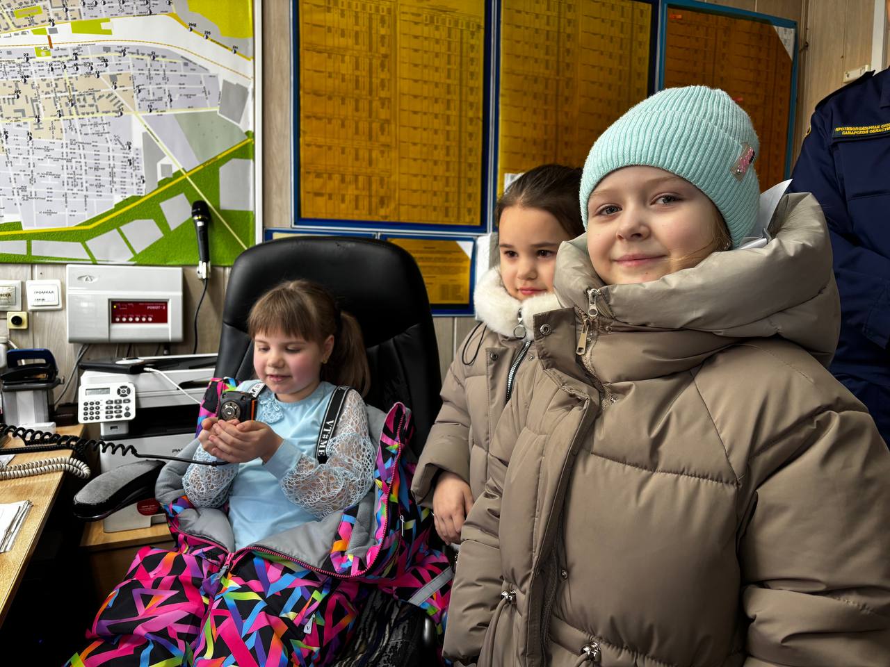 Командир отделения Михаил Марков встретил юных гостей и провел увлекательную экскурсию по пожарной части: показал ребятне учебный класс, диспетчерский пункт, гараж боевых машин. Особой радостью для детей стало знакомство с пожарной техникой, ведь им не просто рассказали, как устроены машины и для чего нужно каждое устройство, а подарили шанс почувствовать себя настоящими отважными огнеборцами: сначала зажгли проблесковые маячки автоцистерны, затем разрешили заглянуть в кабину пожарного автомобиля — дети с интересом изучали её устройство. А в завершение каждый смог примерить каску пожарного и средства индивидуальной защиты.