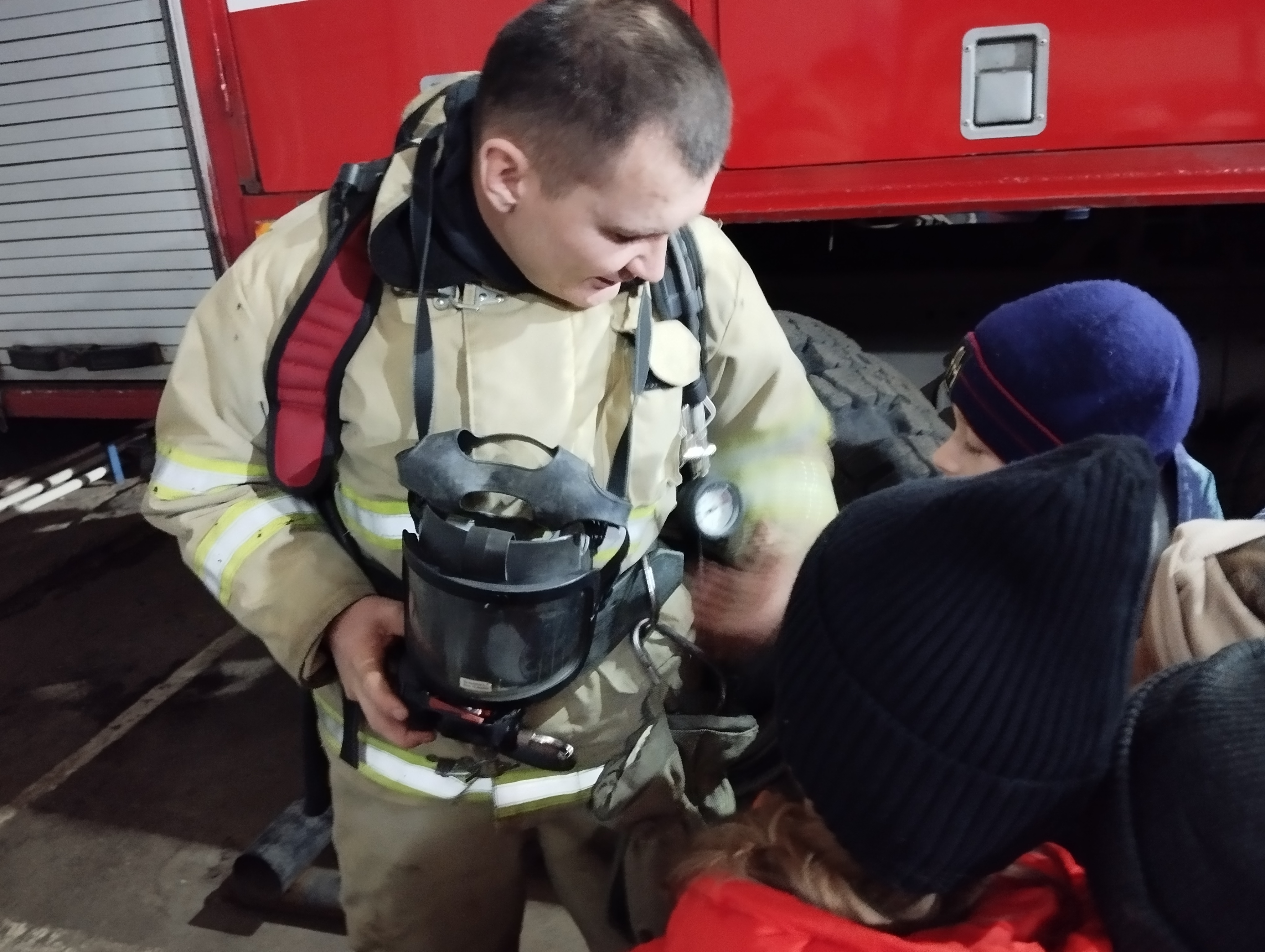 Фаиля Саитовна рассказала ребятам о профессии пожарного, о том, какими профессиональными качествами должен обладать человек огненной профессии. В свою очередь Радиф Рафаэлович поведал о своей трудовой деятельности в пожарной охране. Затем продемонстрировал гостям пожарно-техническое вооружение, снаряжение и технику.